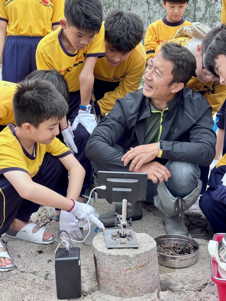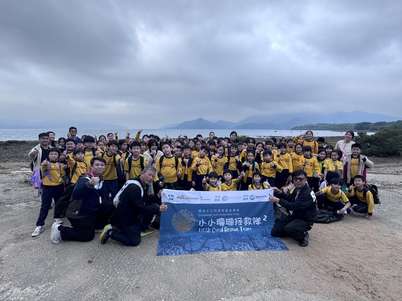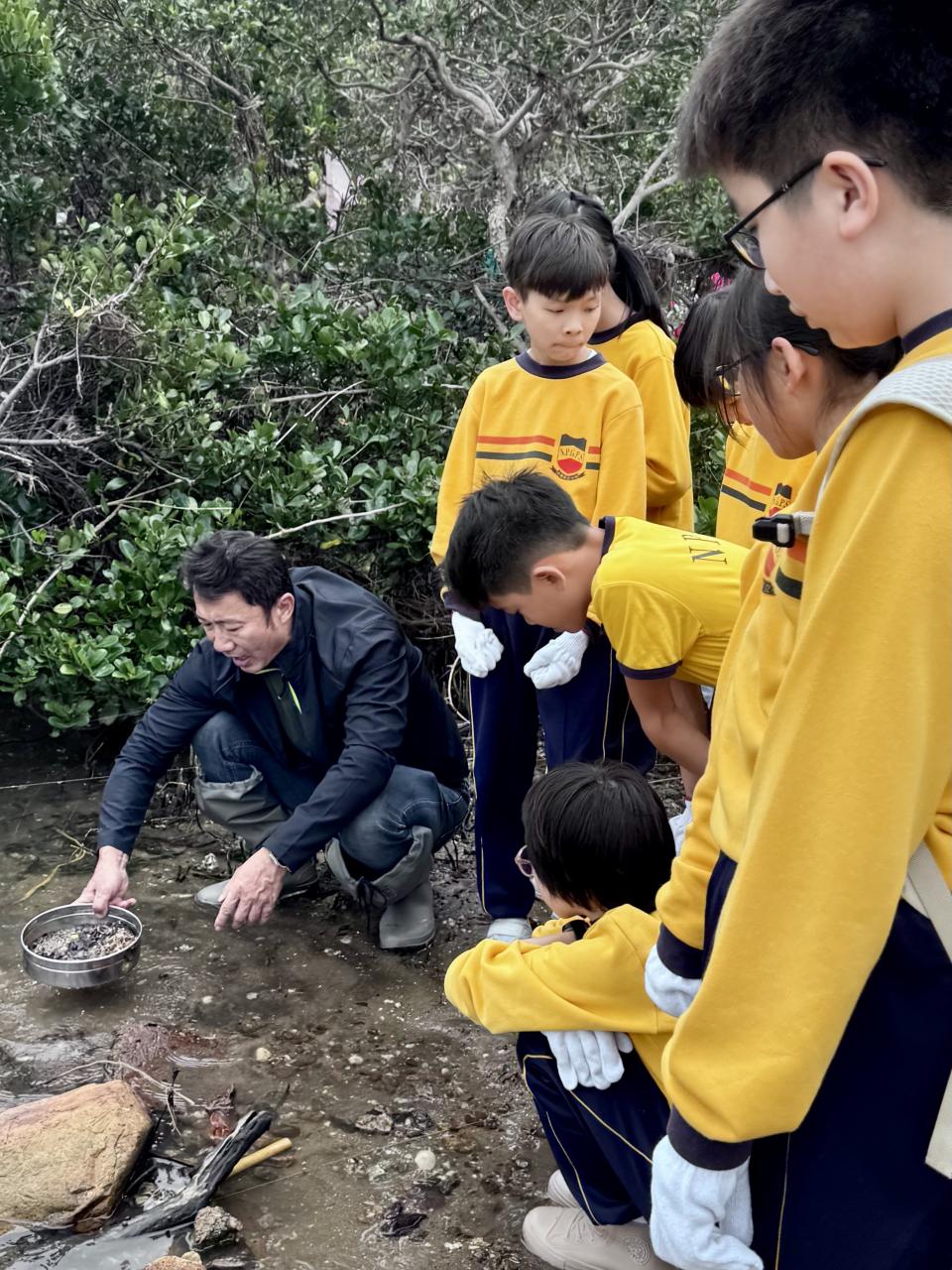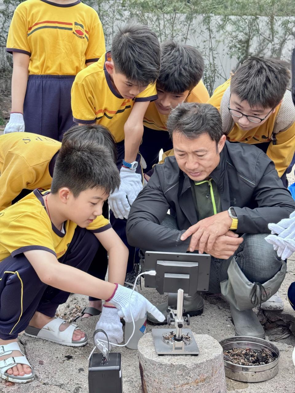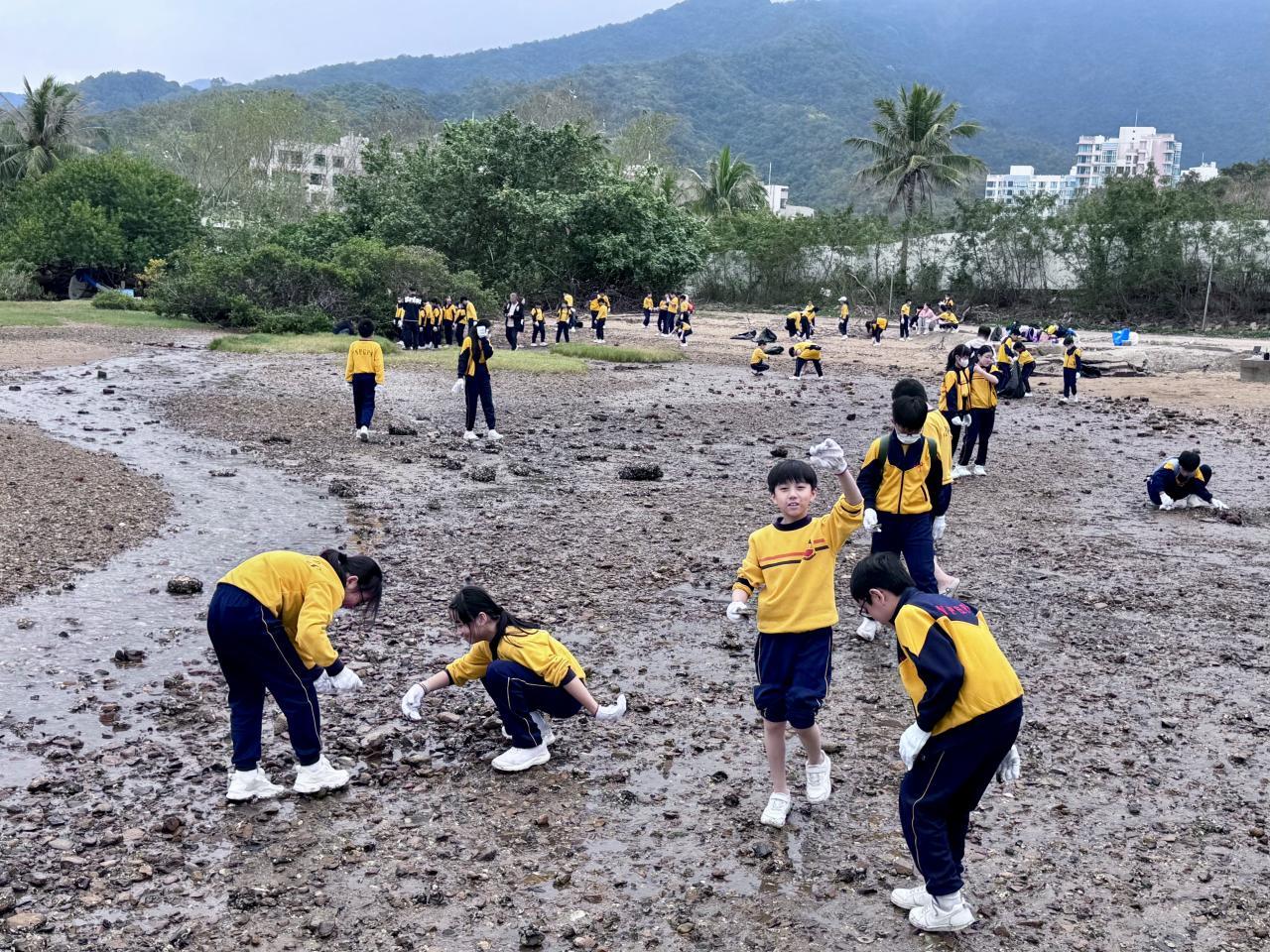 90位四至六年級同學出發到馬鞍山泥涌海灘進行實地考察。資深珊瑚保育學者紀力偉先生與學生一起採集樣本與進行研究,讓同學在泥灘樣本中尋找微塑膠,認識對海洋造成污染的情況。