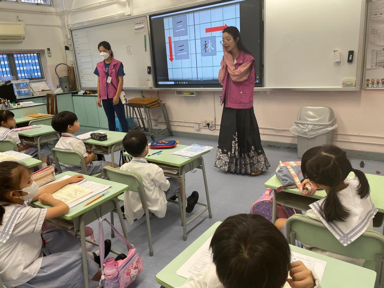 社工培訓家長義工到各小一課室進行有趣的中文活動,教小一學生多感官學習法,更有效地開心學習。
