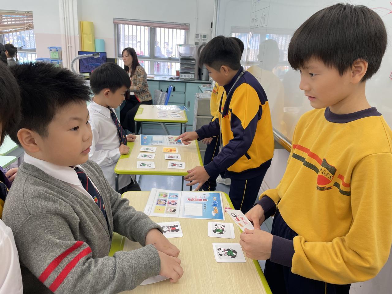 學校社工邀請高小學生擔任「情緒健康活動推廣大使」,由高小學生發揮創意設計遊戲卡,帶領低年級學生玩情緒配對卡遊戲。從中教育教育同學以正向的方式舒緩壓力和情緒。