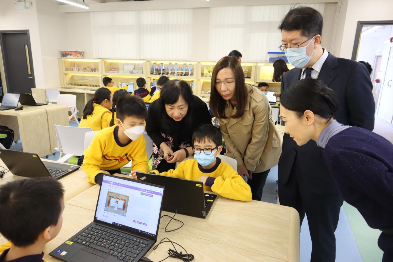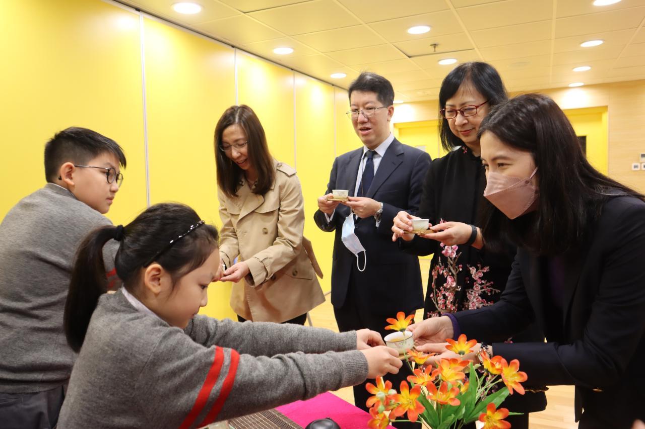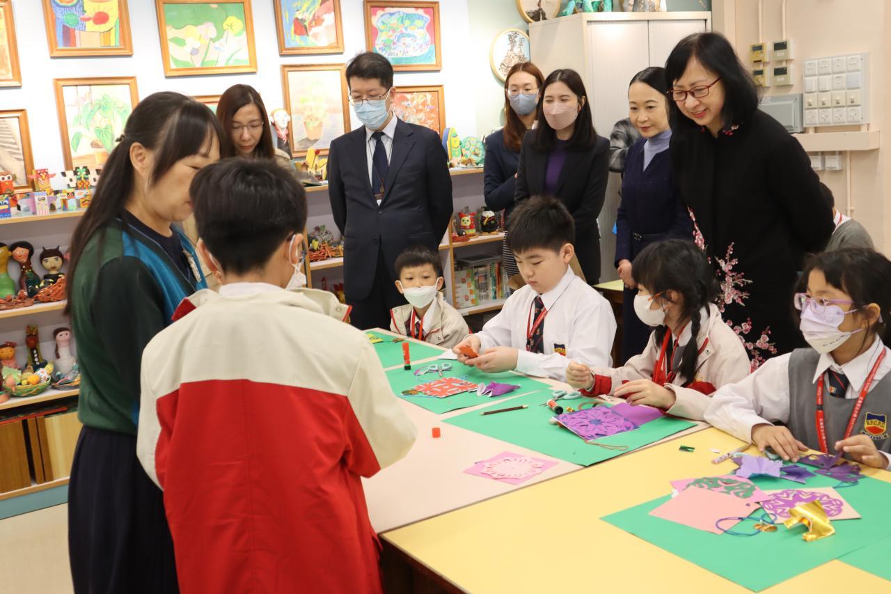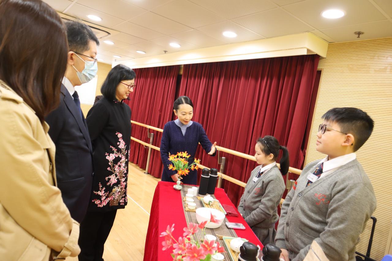 葉韻婷校長先向各位來賓介紹學校的最新動向,接着便參觀校園的環境設施及觀課,包括體育的武術課程、視藝的中華文化課程及資訊科技的STEAM學校活動。來賓更與各級的學生代表面談,了解學生的學習生活,期間,三位小五學生更展示他們日前在校內進行的茶藝文化工作坊中學到的泡茶技巧,各嘉賓對他們一絲不苟的奉茶技巧十分讚賞。最後,嘉賓與學校的家長教師會代表交流。透過訪校,相信定能加深各位嘉賓對本校日常運作的認識,同時體會家長及學生愛校的表現。