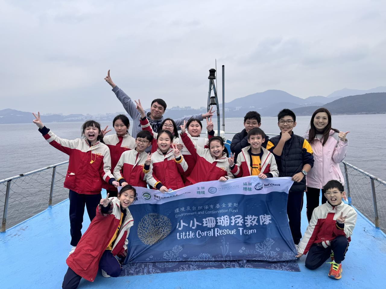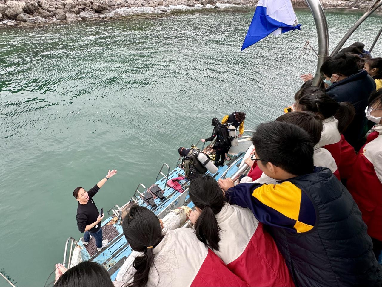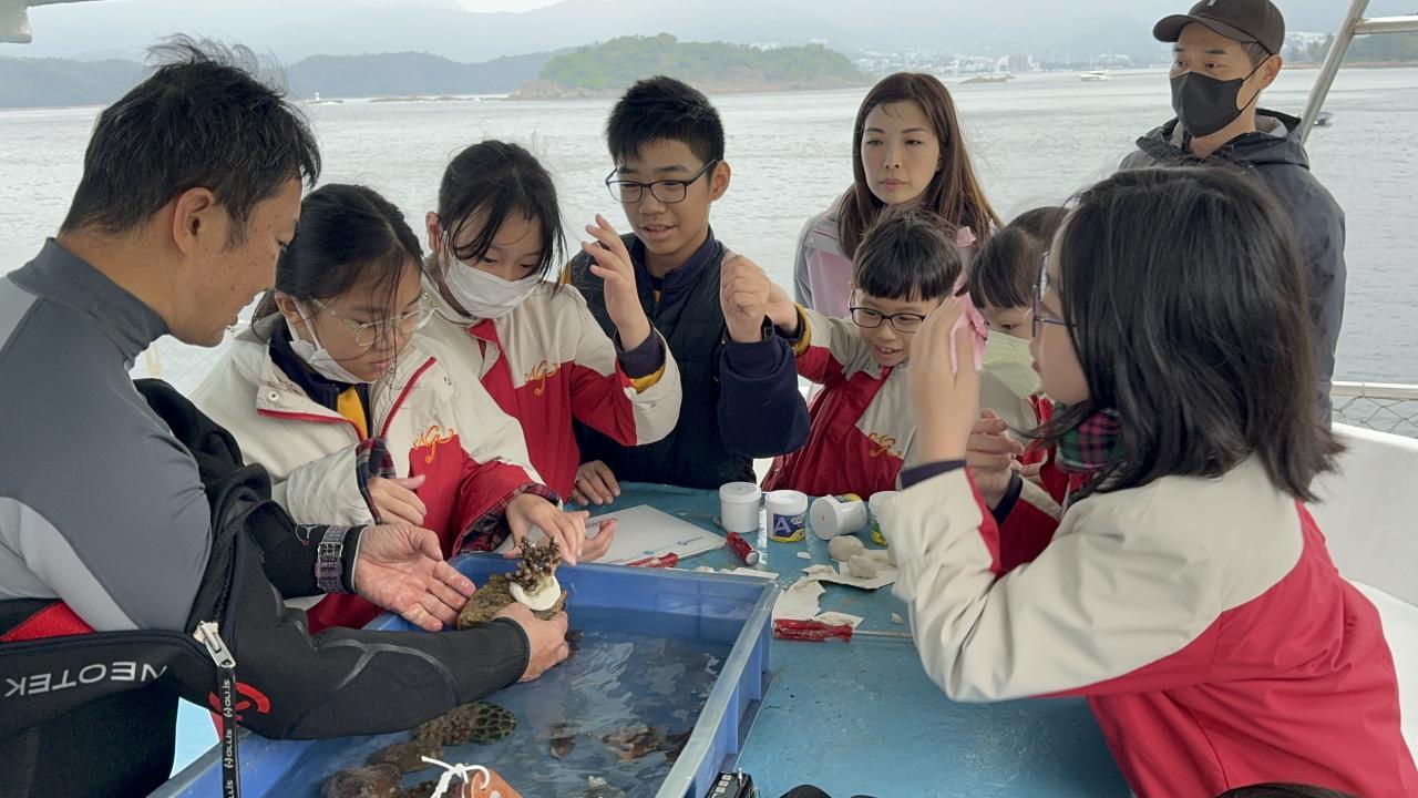 學生乘搭船隻出海到橋咀島附近海域,與潛水員一起修復珊瑚,學習有關海洋生物的知識,從而培養愛護環境、珍惜生命的價值觀和態度。