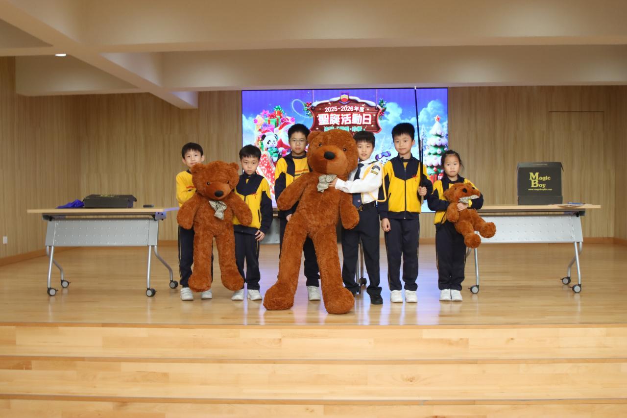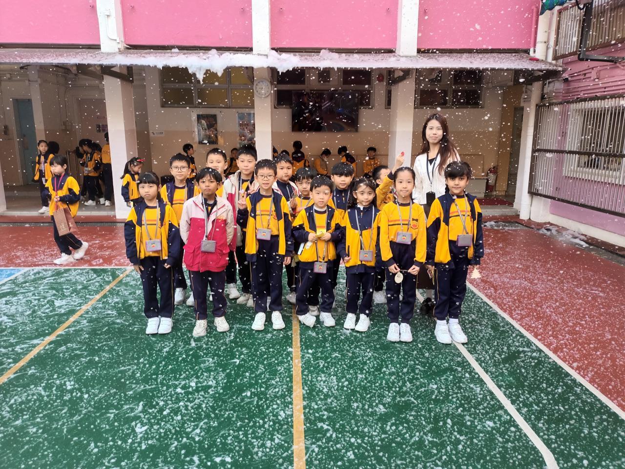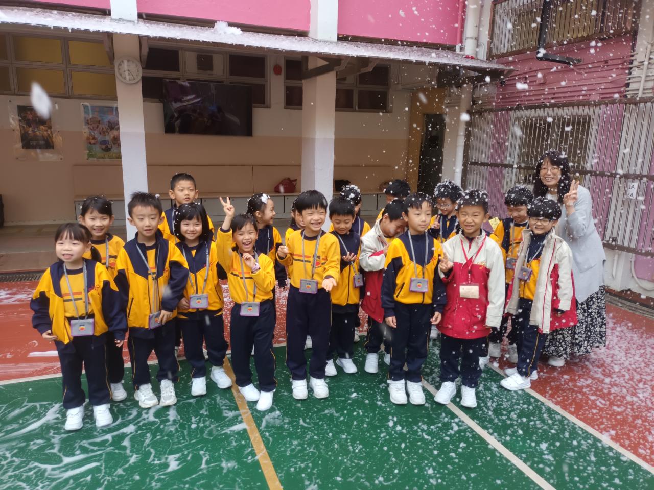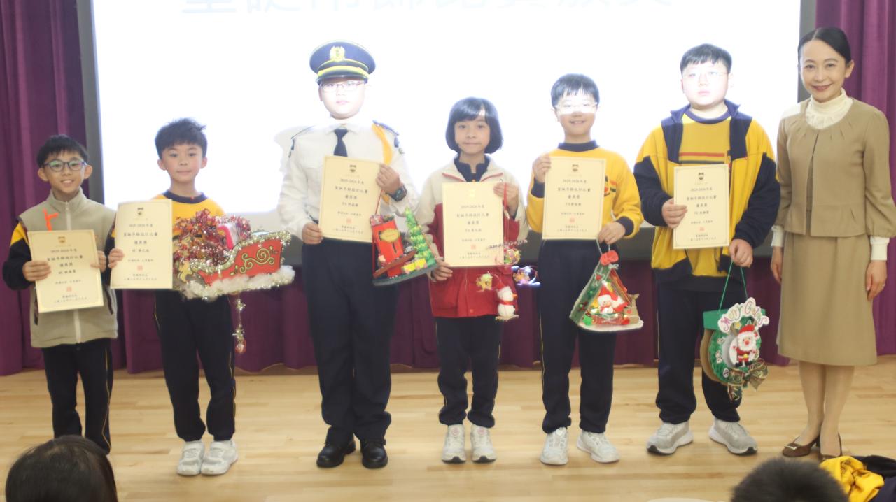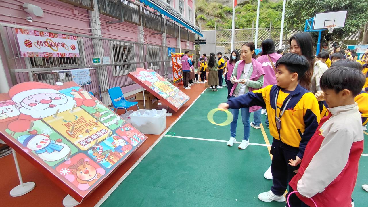當天在禮堂舉行了學生表演,包括手鐘隊、夏威夷小結他校隊、花式跳繩校隊、魔術校隊的表演,以及小藝墟才藝表演,讓學生能在台上展示體藝學習的成果,增強信心及團結精神,並培養學生欣賞他人的能力。此外,在聖誕吊飾設計比賽中獲得優異獎的學生展示了他們的作品,並分享設計理念,讓同學們互相學習和珍惜與家人一同製作比賽作品的機會。在操場上,家長教師會舉辦了攤位活動及飄雪活動,讓同學感受聖誕的氛圍,並透過DIY吊飾寫下祝福。在課室內,班主任帶領同學進行健康小食分享,透過簡報引導學生珍惜與人相處的機會,關愛身邊的人,並分享感謝和祝福。