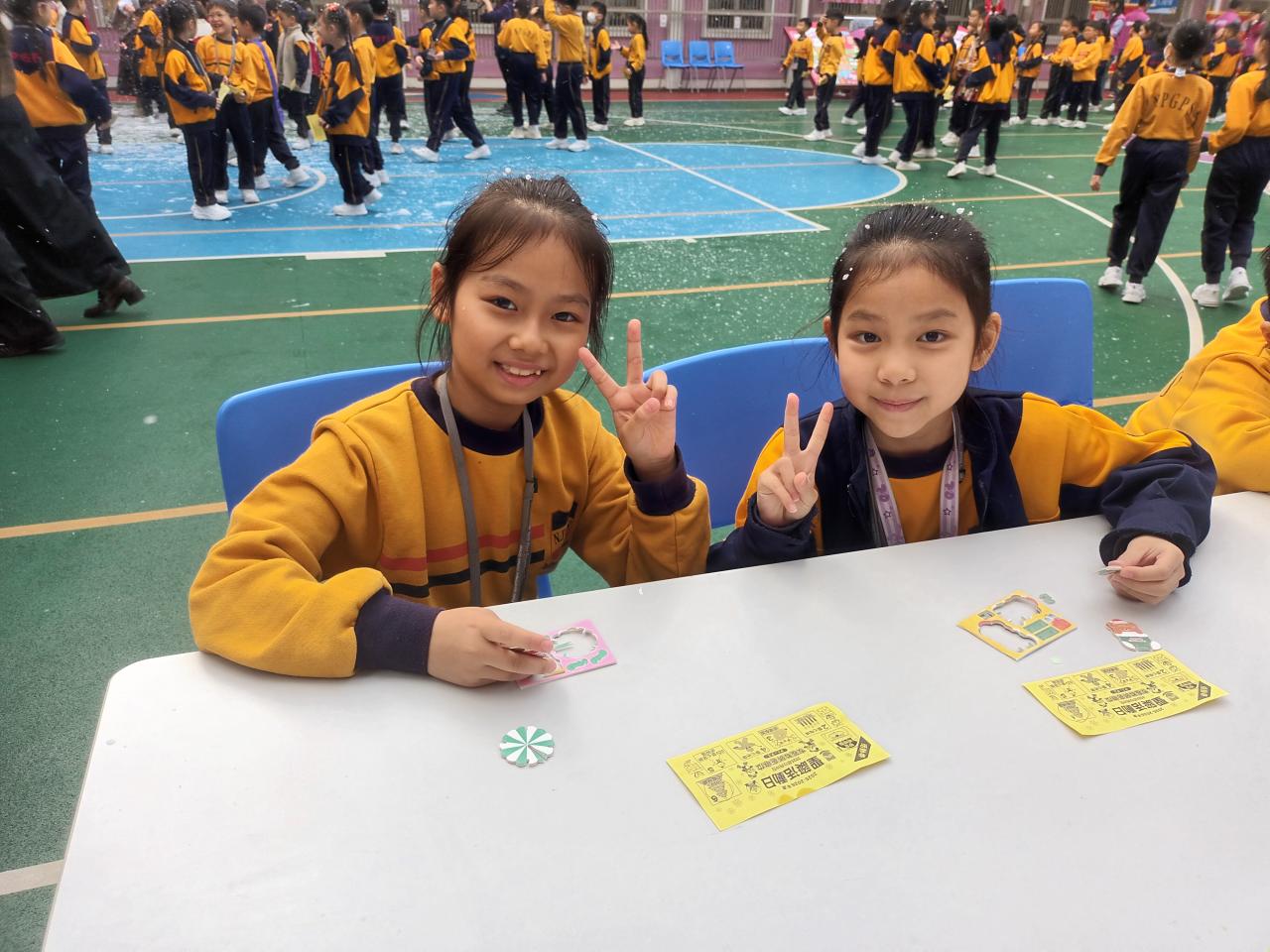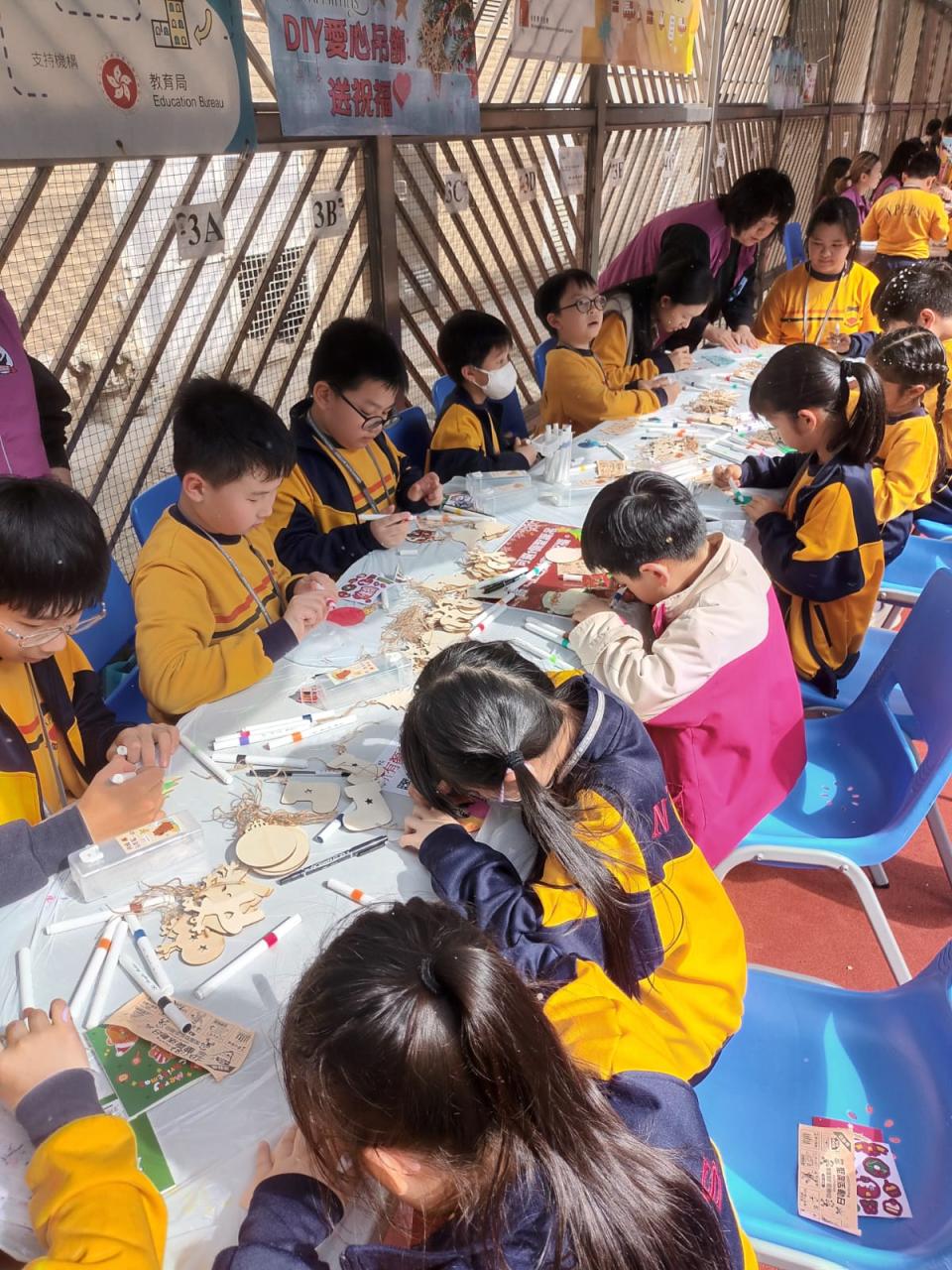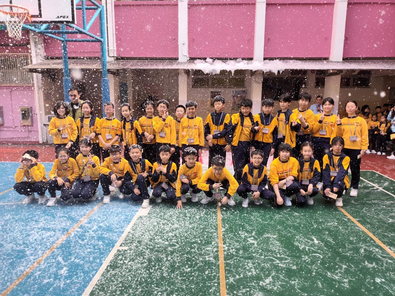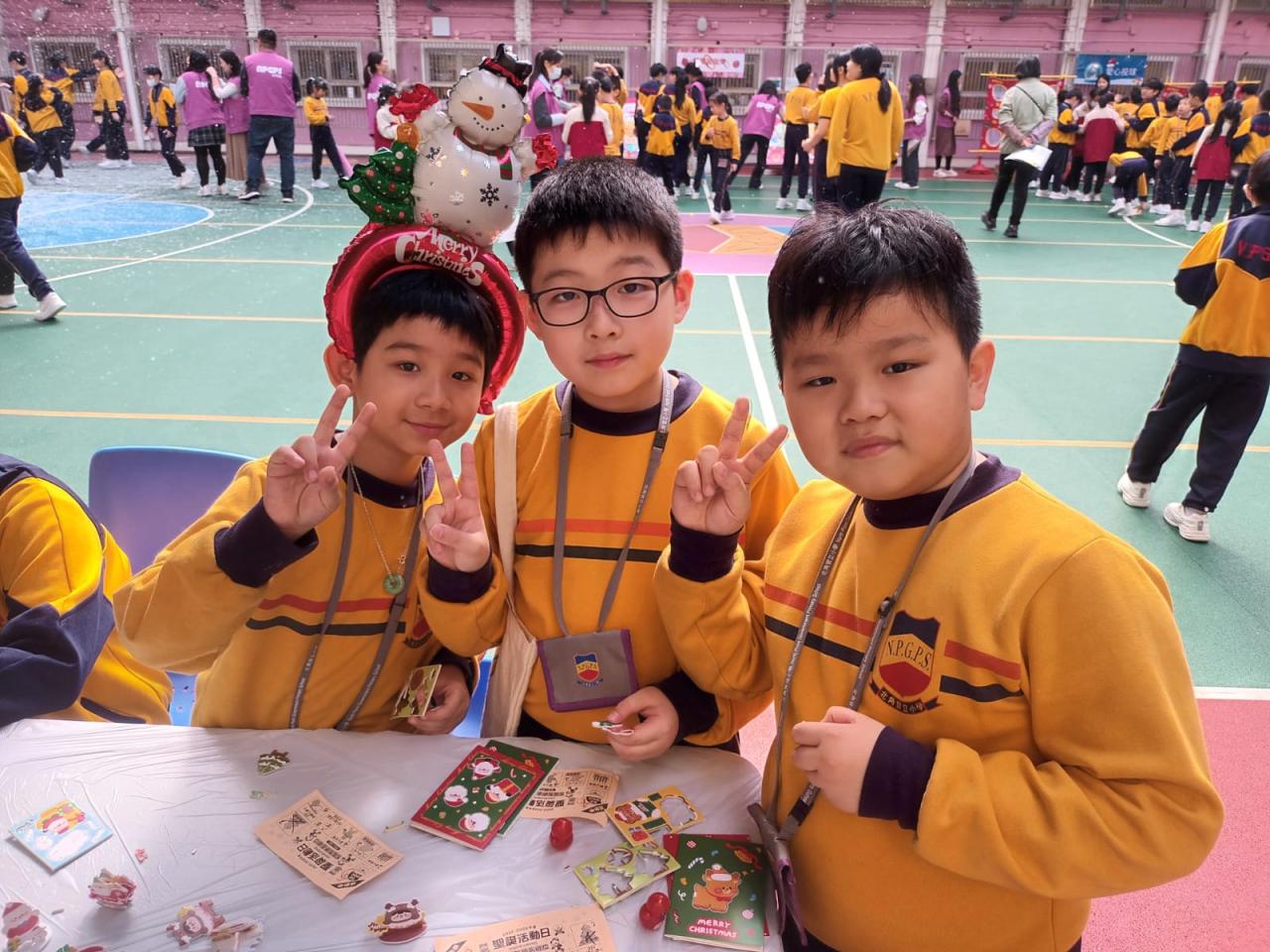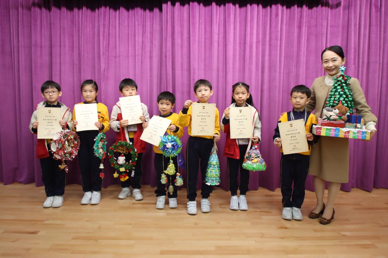 當天在禮堂舉行了學生表演,包括手鐘隊、夏威夷小結他校隊、花式跳繩校隊、魔術校隊的表演,以及小藝墟才藝表演,讓學生能在台上展示體藝學習的成果,增強信心及團結精神,並培養學生欣賞他人的能力。此外,在聖誕吊飾設計比賽中獲得優異獎的學生展示了他們的作品,並分享設計理念,讓同學們互相學習和珍惜與家人一同製作比賽作品的機會。在操場上,家長教師會舉辦了攤位活動及飄雪活動,讓同學感受聖誕的氛圍,並透過DIY吊飾寫下祝福。在課室內,班主任帶領同學進行健康小食分享,透過簡報引導學生珍惜與人相處的機會,關愛身邊的人,並分享感謝和祝福。