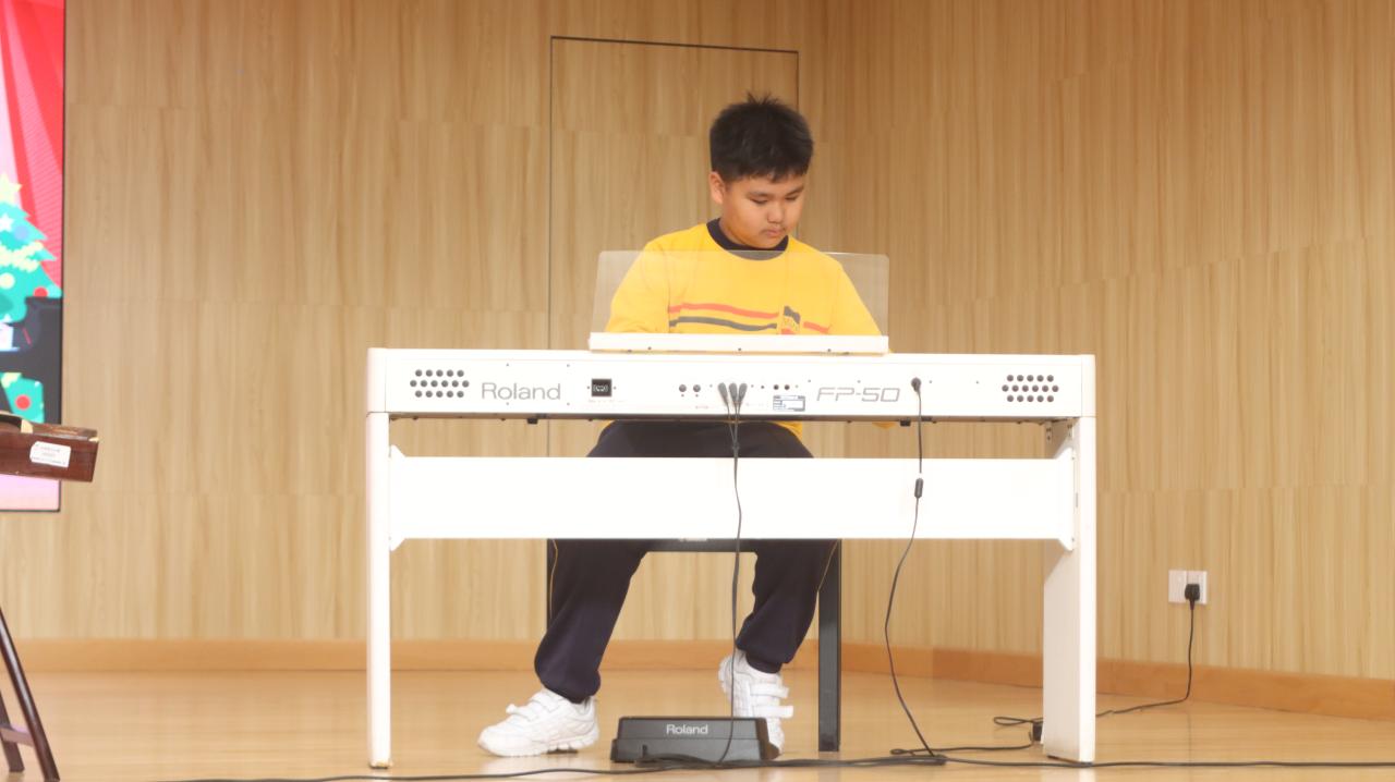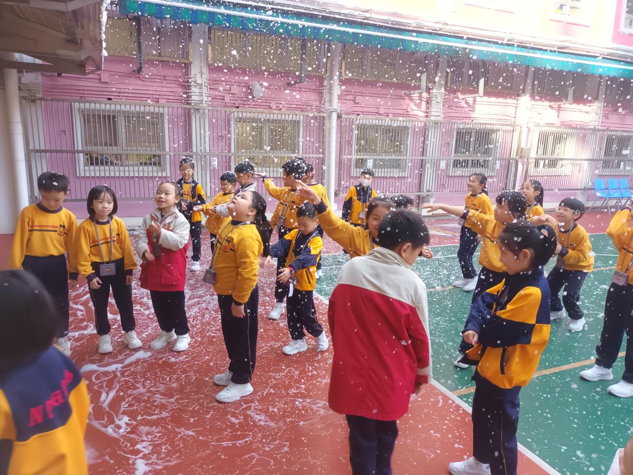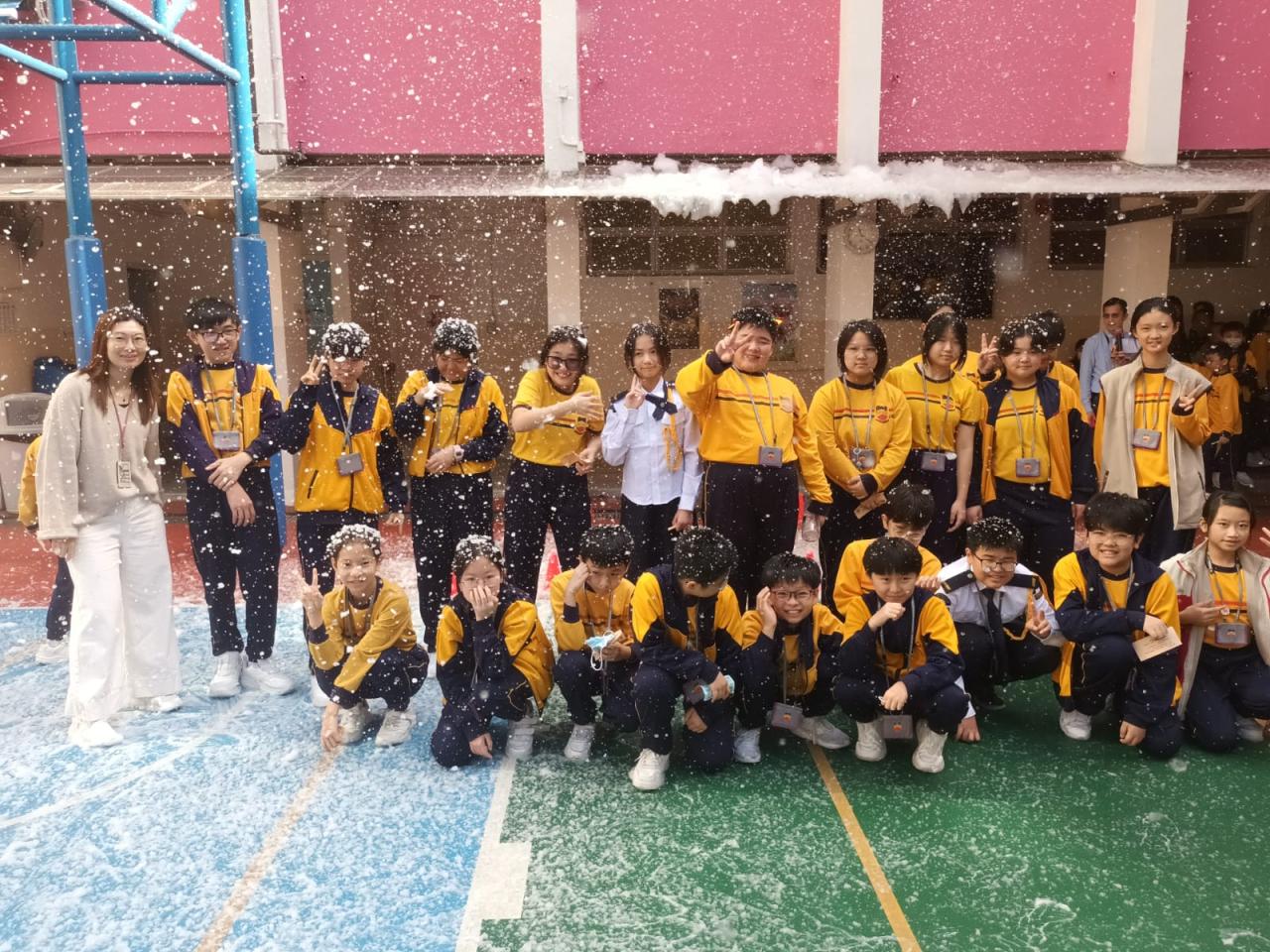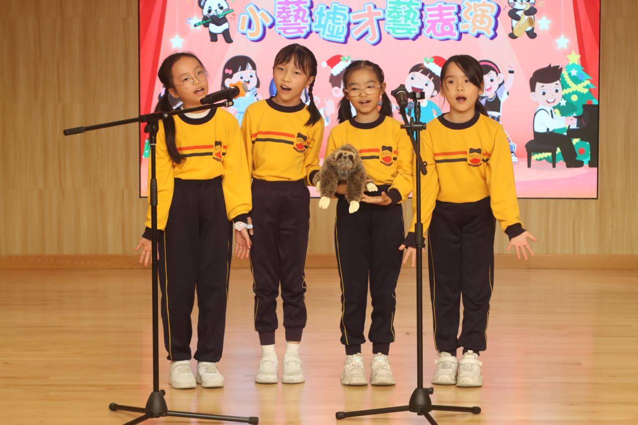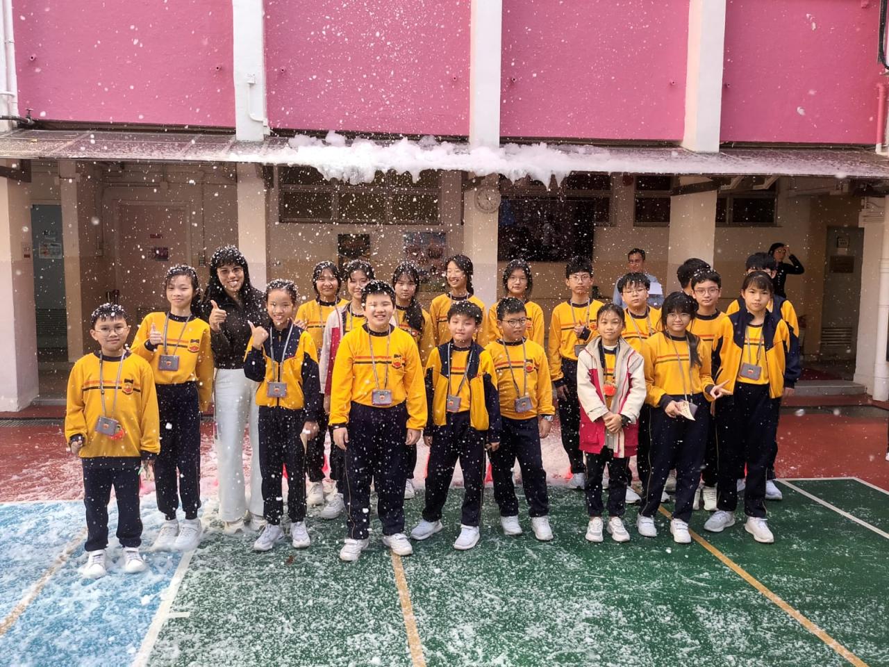當天在禮堂舉行了學生表演,包括手鐘隊、夏威夷小結他校隊、花式跳繩校隊、魔術校隊的表演,以及小藝墟才藝表演,讓學生能在台上展示體藝學習的成果,增強信心及團結精神,並培養學生欣賞他人的能力。此外,在聖誕吊飾設計比賽中獲得優異獎的學生展示了他們的作品,並分享設計理念,讓同學們互相學習和珍惜與家人一同製作比賽作品的機會。在操場上,家長教師會舉辦了攤位活動及飄雪活動,讓同學感受聖誕的氛圍,並透過DIY吊飾寫下祝福。在課室內,班主任帶領同學進行健康小食分享,透過簡報引導學生珍惜與人相處的機會,關愛身邊的人,並分享感謝和祝福。
