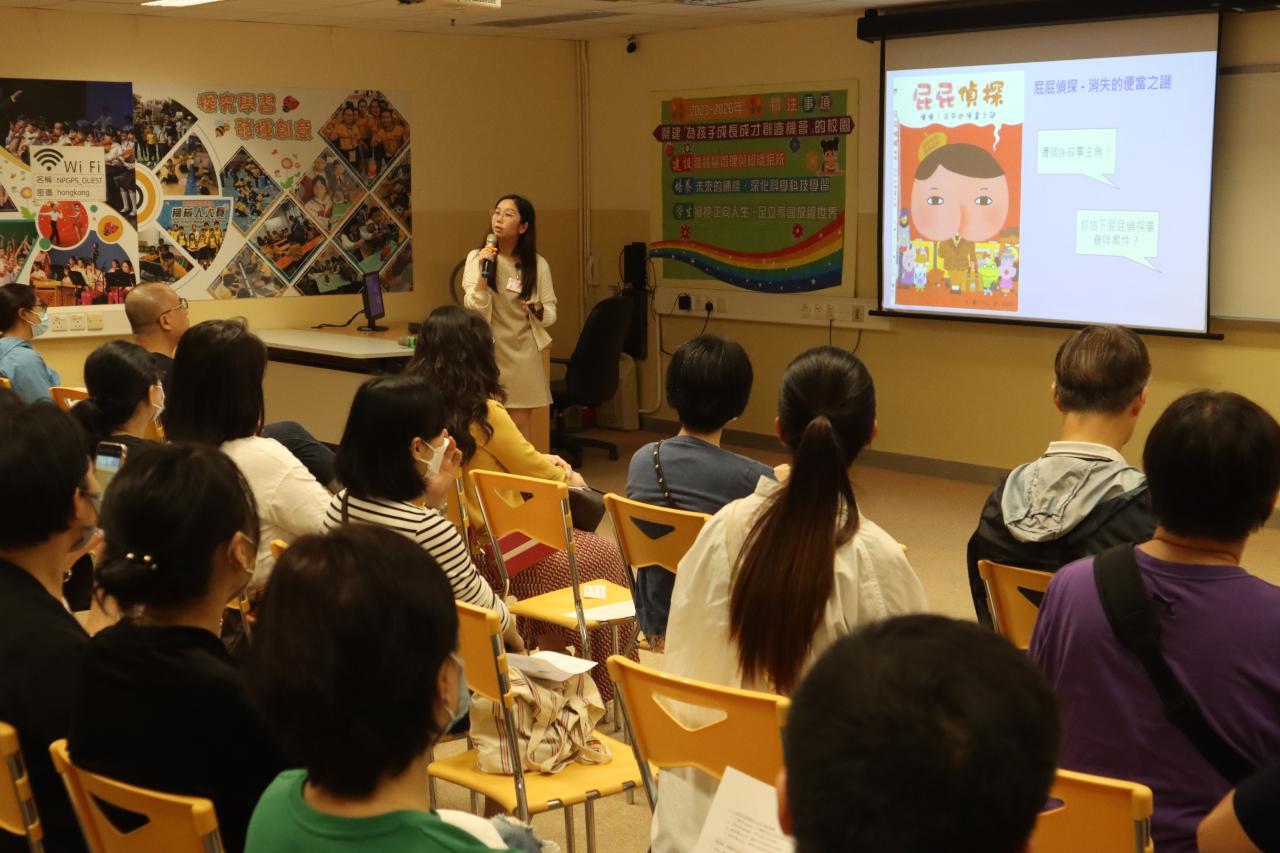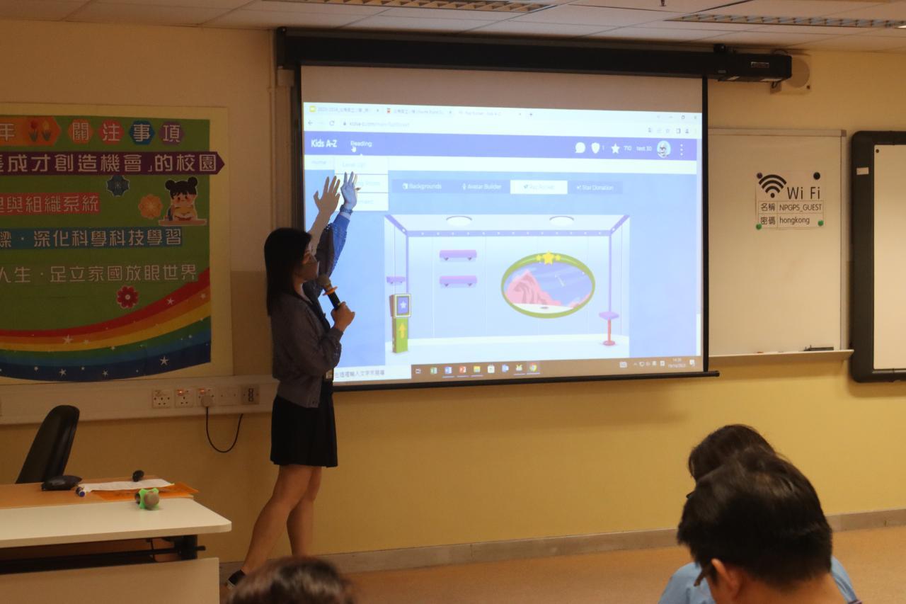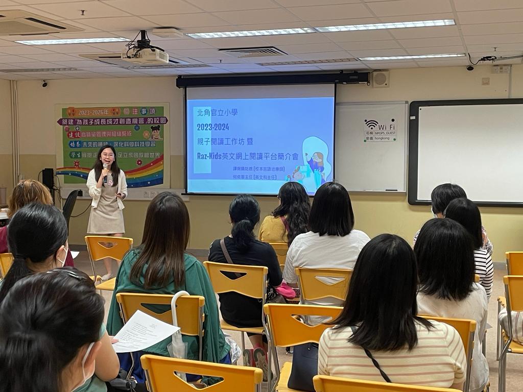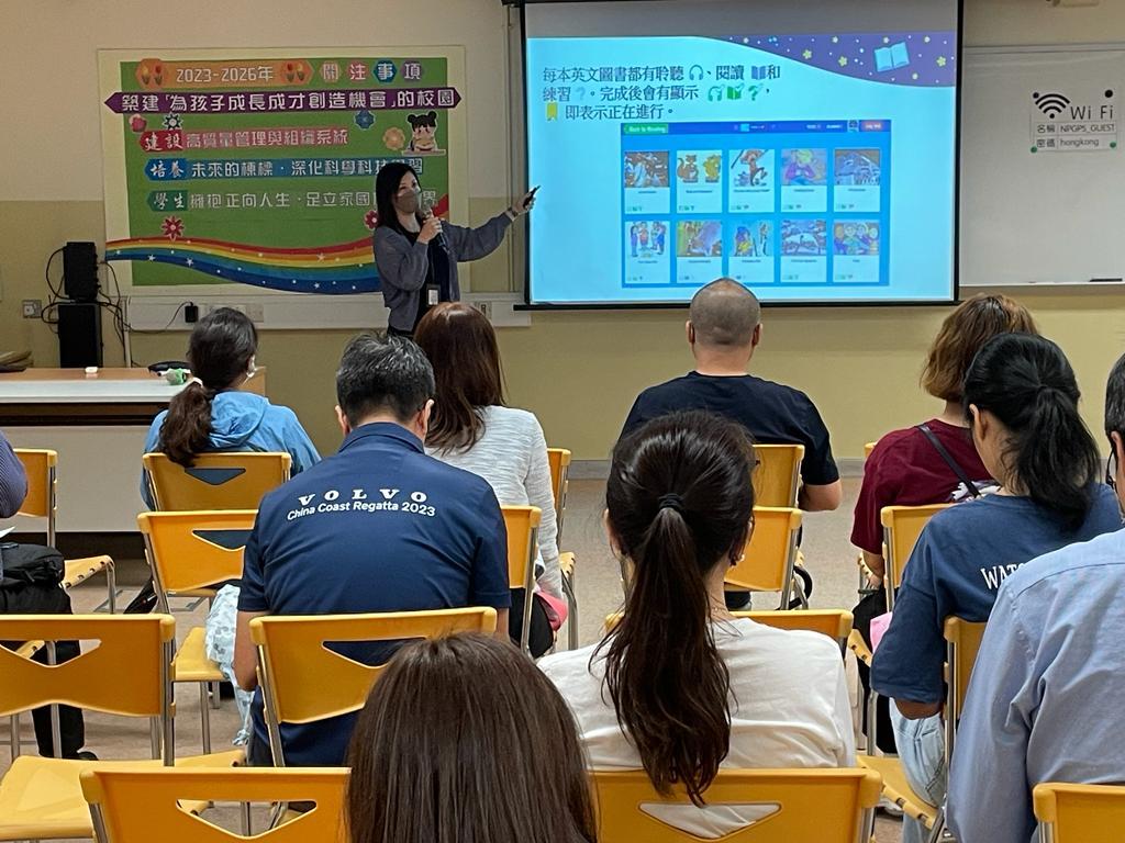 本校言語治療師譚婉晴姑娘主持家長親子閱讀工作坊,家長從中學習到對話式閱讀技巧及說故事小貼士,有助提升親子伴讀的成效。此外,英文科主任何依華主任向家長介紹了Raz-Kids英文網上閱讀平台的操作方法,以鼓勵學生多閱讀英文課外書。