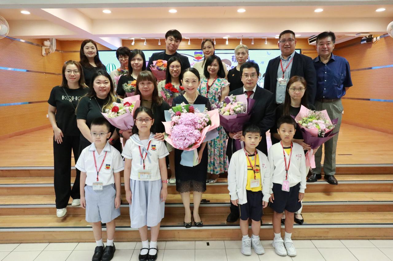 隨後,學生代表分別以中文及英文向老師致謝辭。接著,家長教師會的委員和學生代表向葉校長及各位老師獻上花束,以表達他們的謝意,場面既溫馨又感人。在此,我們特別感謝當天出席的家長教師會委員,他們以身作則,支持「家長也敬師」的活動。