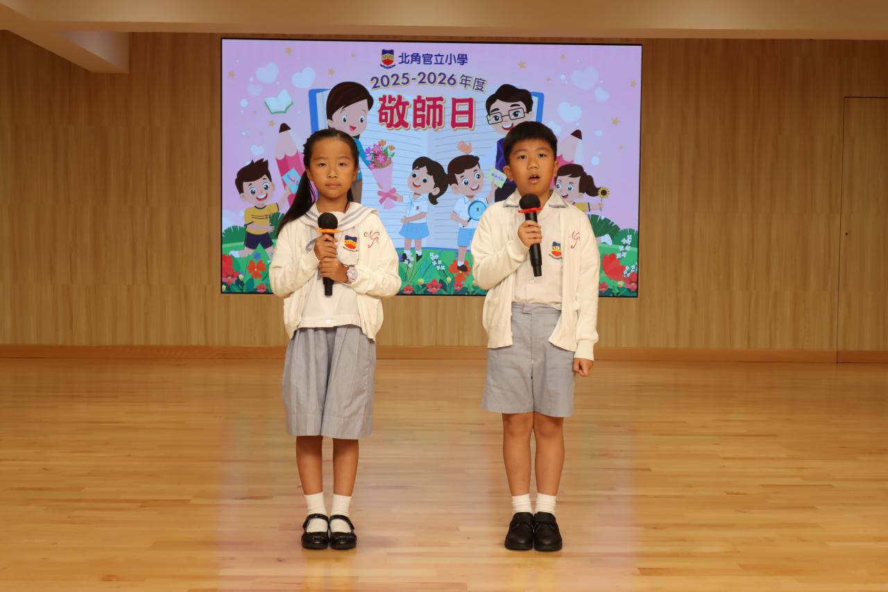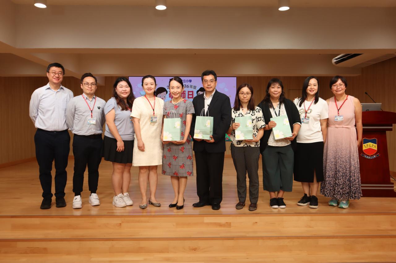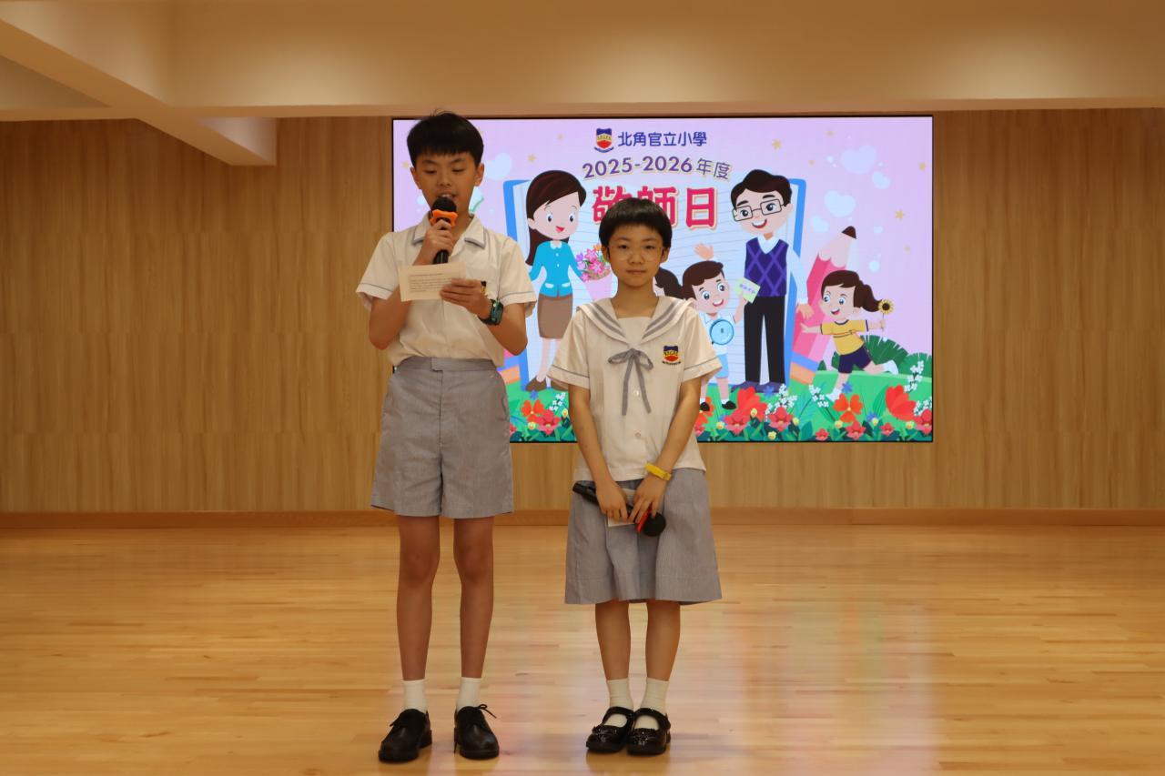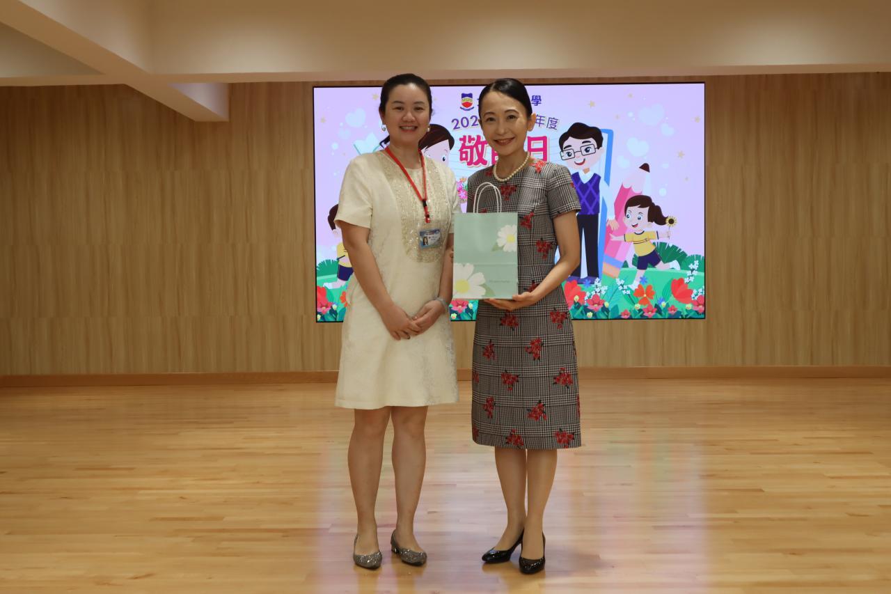 隨後,學生代表分別以中文及英文向老師致謝辭,表達敬意與感激之情。接着,家長教師會的委員和學生代表向葉校長及各位老師獻上禮物包,以表達他們的謝意,洋溢著濃厚的敬師氛圍。
