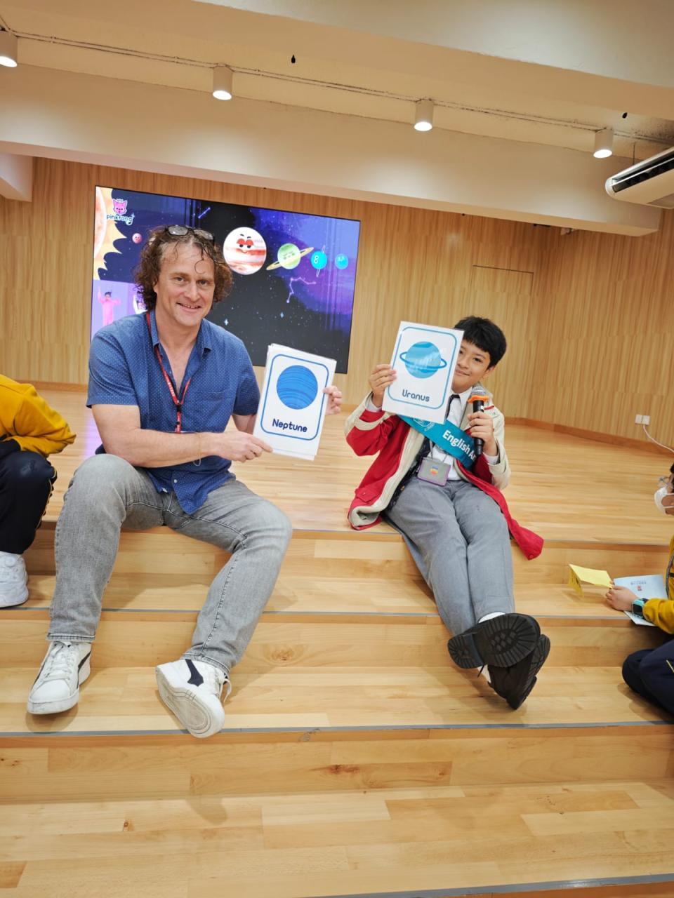 The pupils are given a preliminary task the days before each English Day so they are prepared for the activities and ready to participate. As our theme revolves around space travel, topics and activities this academic year have included learning in detail about the inner workings of a spacesuit (officially named- Extravehicular Mobile Unit); the different parts of a spacecraft and rockets; comparing and contrasting the planets in our solar system and how Earth’s sun makes all life possible. On English Days the pupils work together to solve riddles, quiz each other about the planets and enjoy fun games, such a ‘Planet Bingo’, or Space Travel tongue twisters.