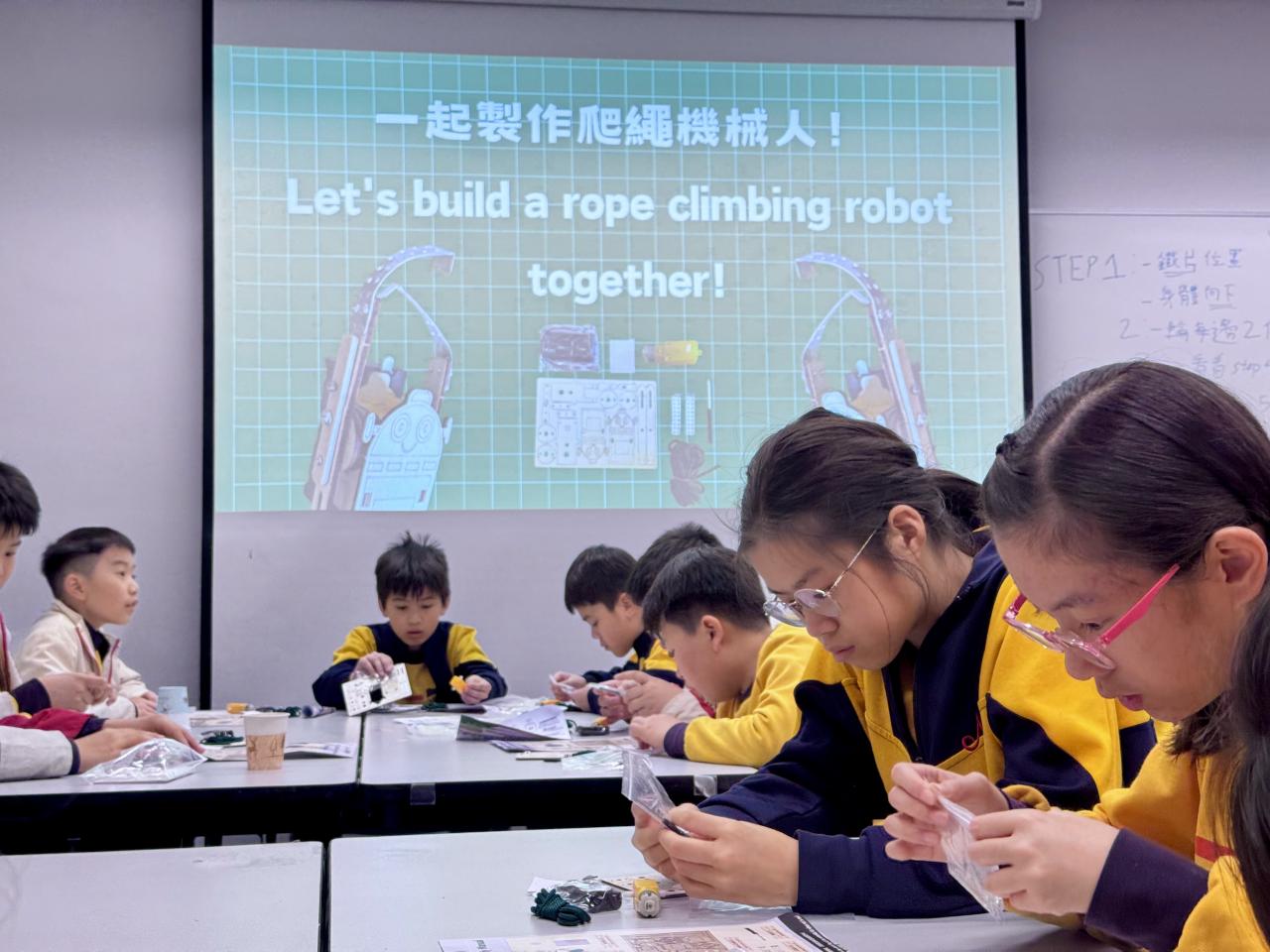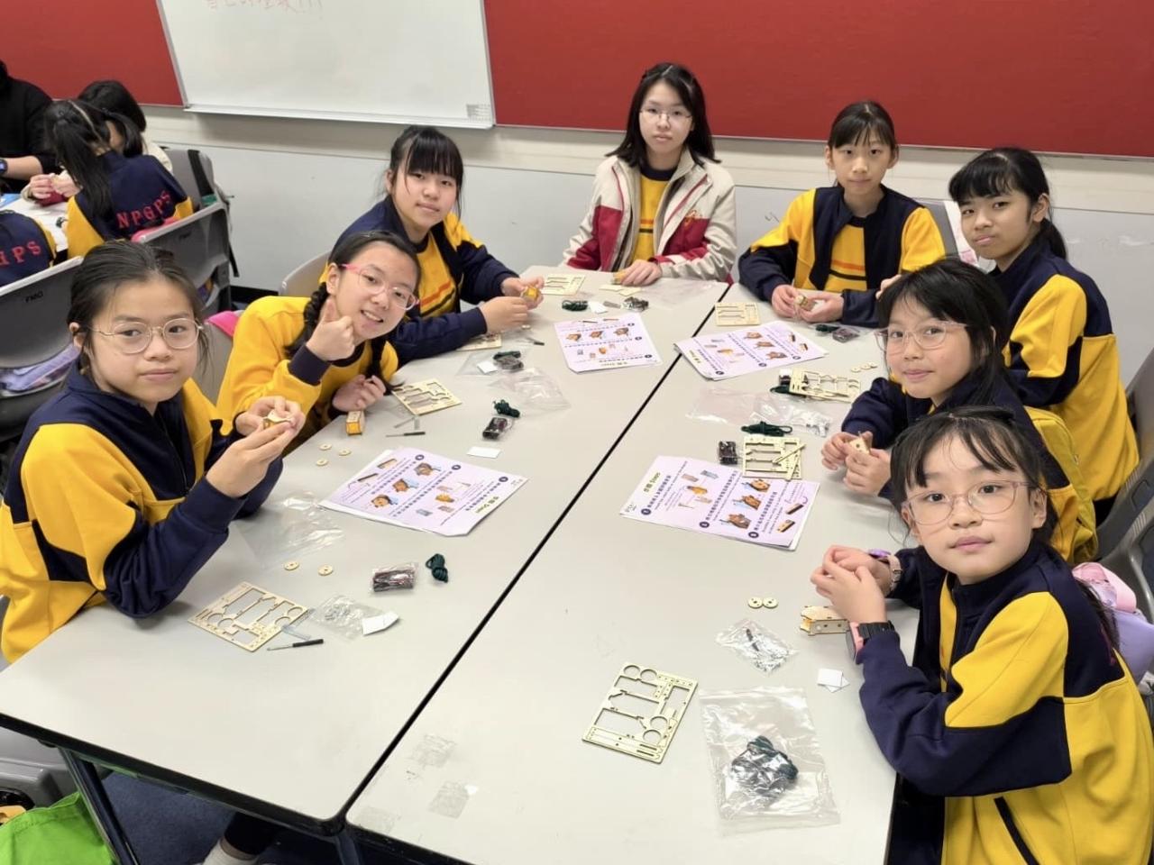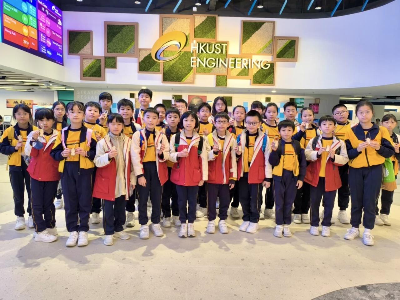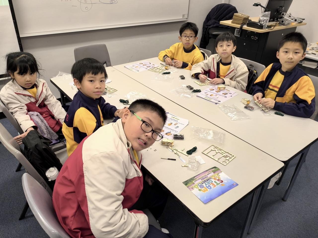 28位四至六年級同學參與由香港科技大學舉辦的STEAM DAY@HKUST活動,透過大學生的介紹及指導,認識科學及工程學系的學習內容。同學更有機會在工程系大學生的指導下製作攀繩機械人,在進行測試和改良的過程中,體驗工程設計及創作的樂趣。
