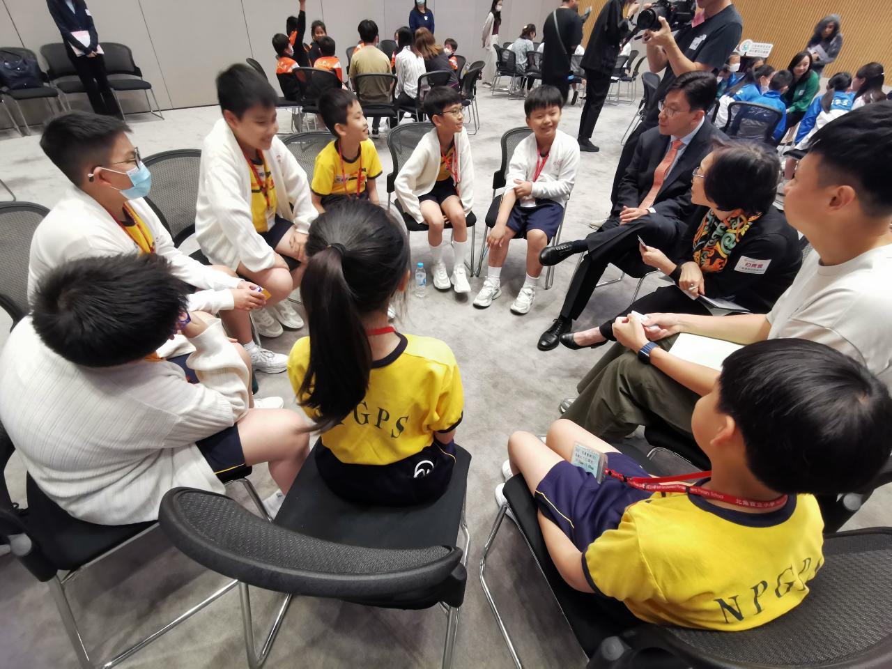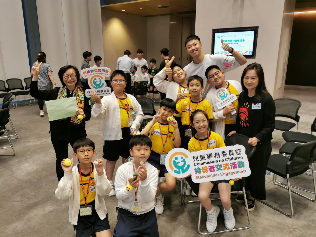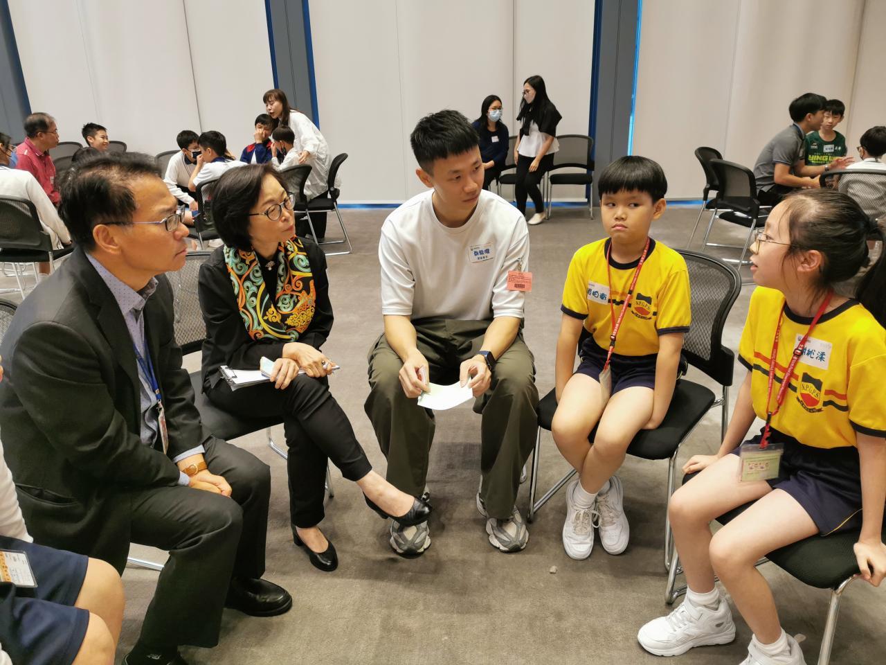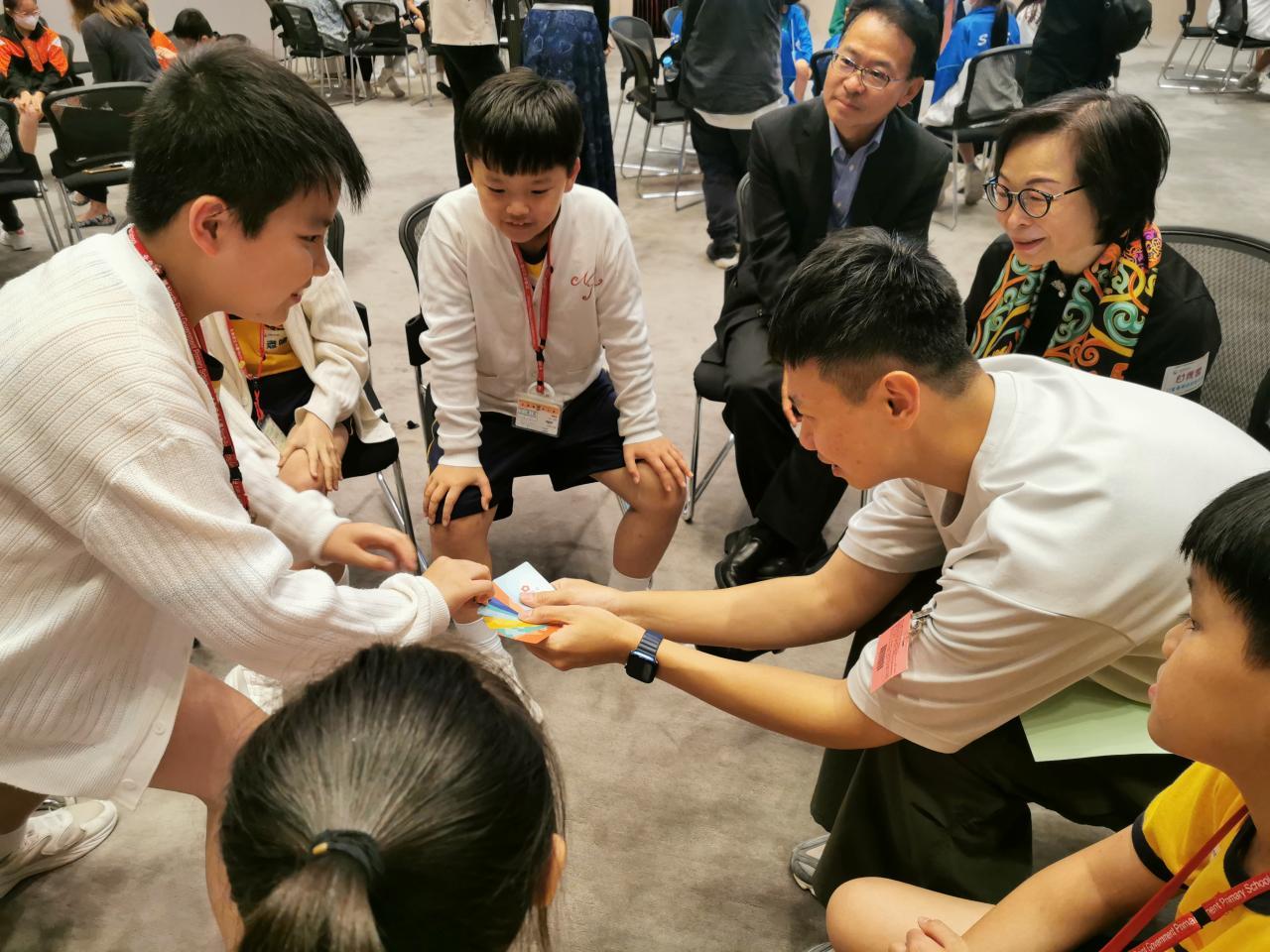 本校8名學生及其家長參與兒童事務委員會舉行「正向家長.擁抱孩子」持份者交流活動,包括觀賞親子電影《留聲》、家長講座、孩子分組遊戲及親子互動環節,旨在鼓勵家長正向育兒,締造關愛和有利兒童成長的環境,從而促進兒童的精神健康。同學們更有機會與勞工及福利局孫玉菡局長一起進行分組遊戲,家長和孩子們也歡度了一個既充實又愉快的下午。