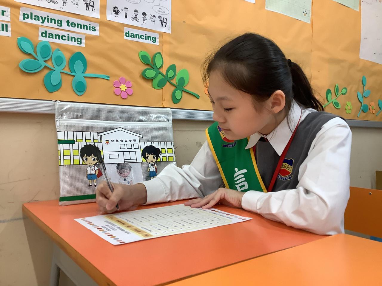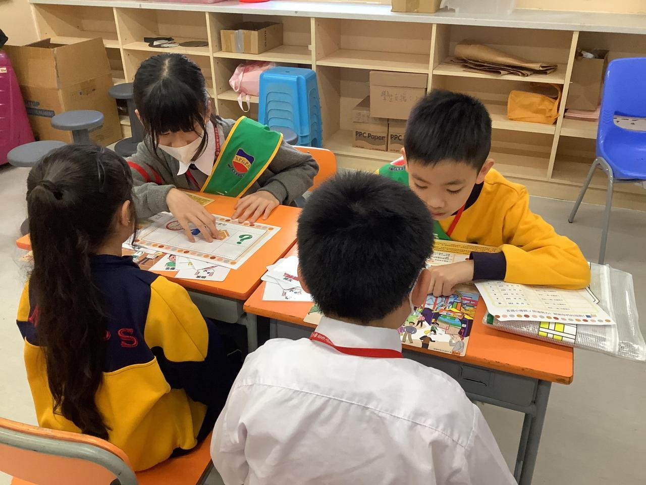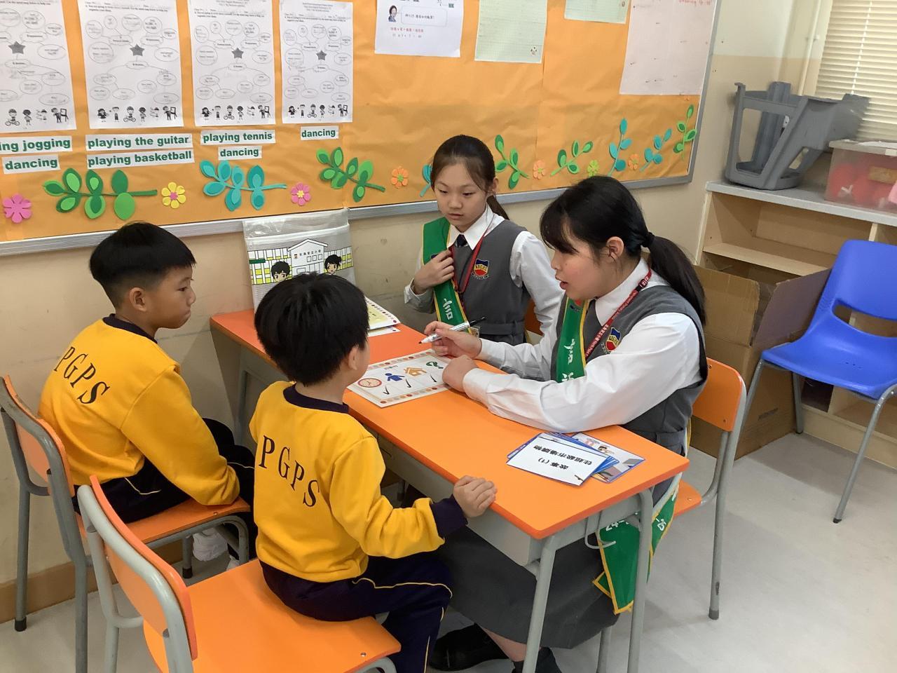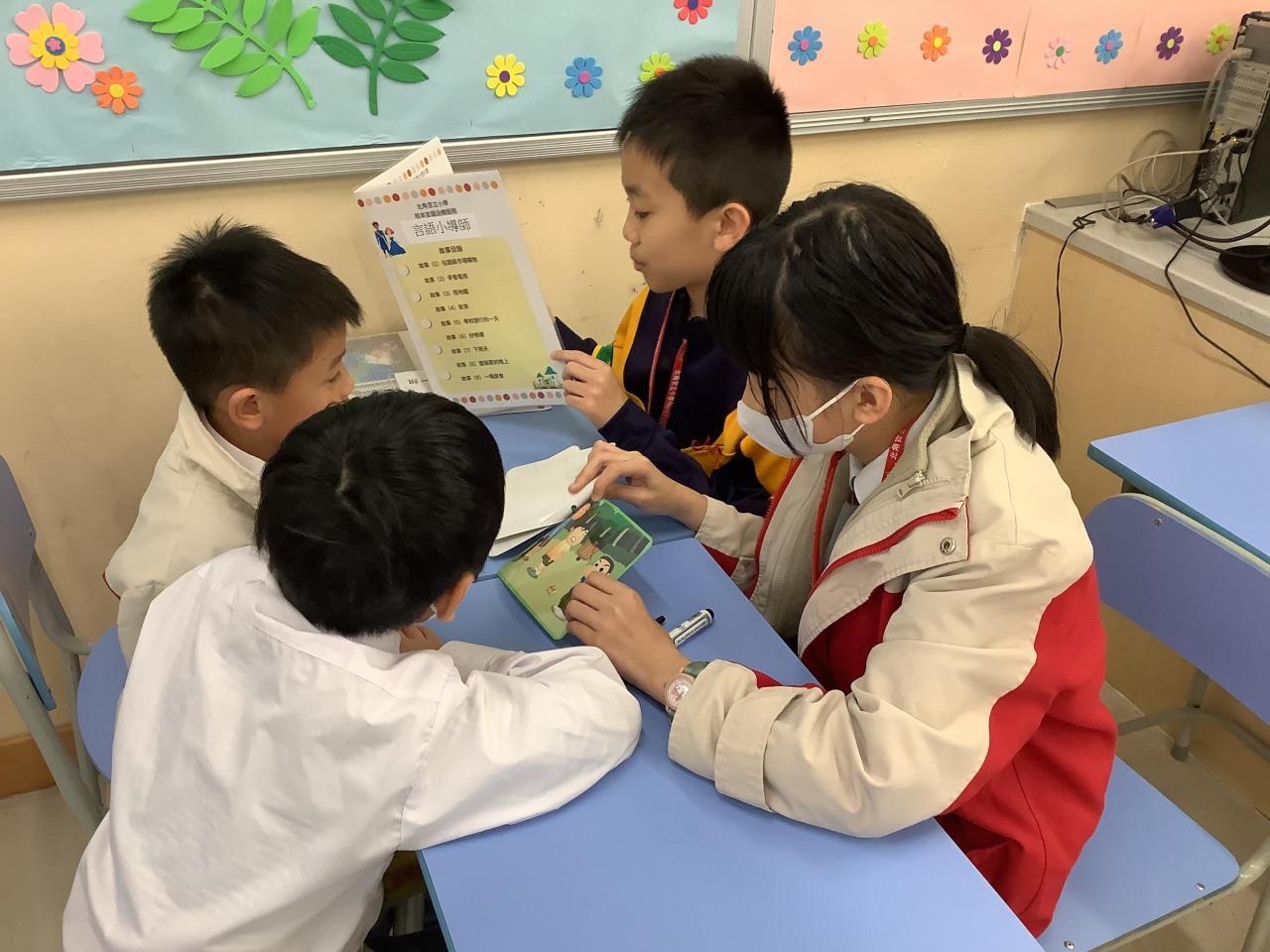 本年度校本言語治療師譚姑娘訓練10位高年級學生成為「言語小導師」,幫助低年級學生理解故事內容及掌握說故事的技巧,提昇其表達能力。「言語小導師」於逢星期三的膳息時段利用圖畫卡及視覺提示卡進行活動,並在完成活動後把學生表現紀錄在紀錄表。活動有助低年級學生認識故事元素及培養小導師關顧他人、助人自助的精神。
