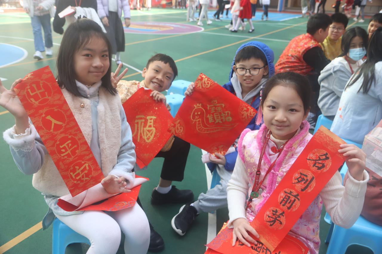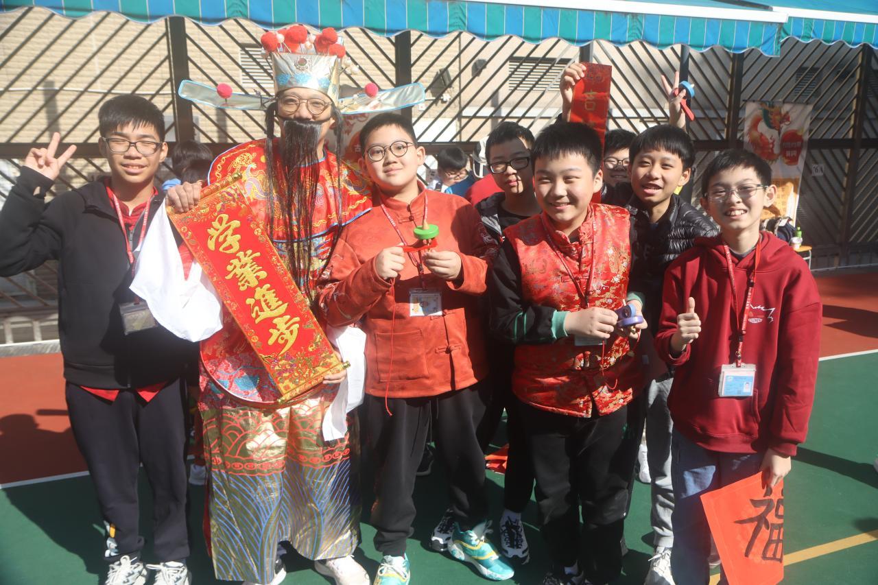 為了迎接新春的到來,本校於2025年1月21日舉行「中華文化迎新春活動日」。當天的節目相當豐富,包括家教會揮春攤位、龍鬚糖製作示範、傳統「六藝」攤位遊戲、粵劇表演、變臉表演,新春掛飾製作、中國象棋課等,同學透過這些活動體驗和加深對中華文化的認識。六年級同學更在老師指導下親手製作及烹煮湯圓,隨即一起品嘗,除了感受團圓的氣氛,也為以「搓湯圓」為題的作文課做好準備。為了增添節日氣氛,校園各處都換上了新春的裝飾,同學們、老師們也身穿華服,互相祝賀。家教會水墨畫班的家長們,更親自寫了過千張揮春送給同學。更有家長裝扮成「財神」向大家拜年,他們所到之處隨即引來一片歡樂的笑聲。