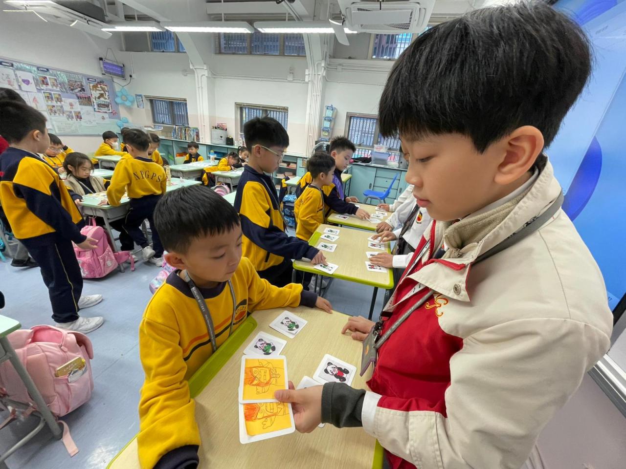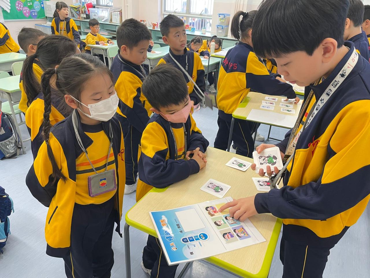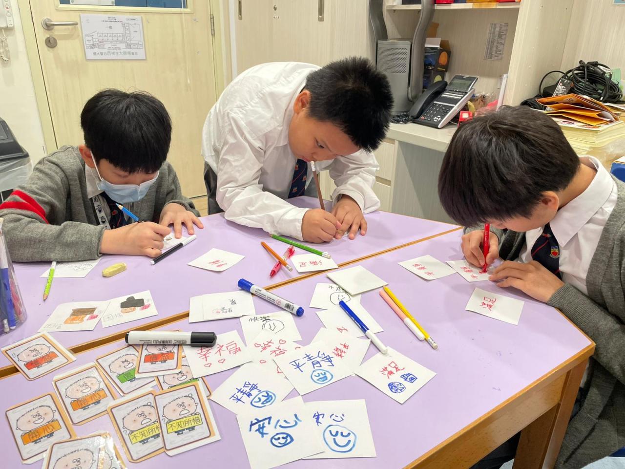 學校社工邀請高小學生擔任「情緒健康活動推廣大使」,由高小學生發揮創意設計遊戲卡,帶領低年級學生玩情緒配對卡遊戲。從中教育教育同學以正向的方式舒緩壓力和情緒。