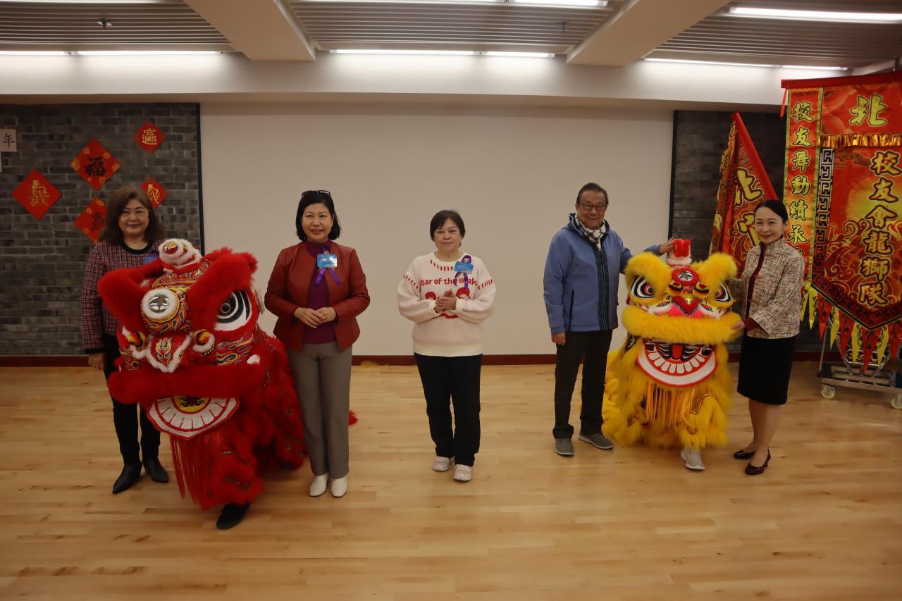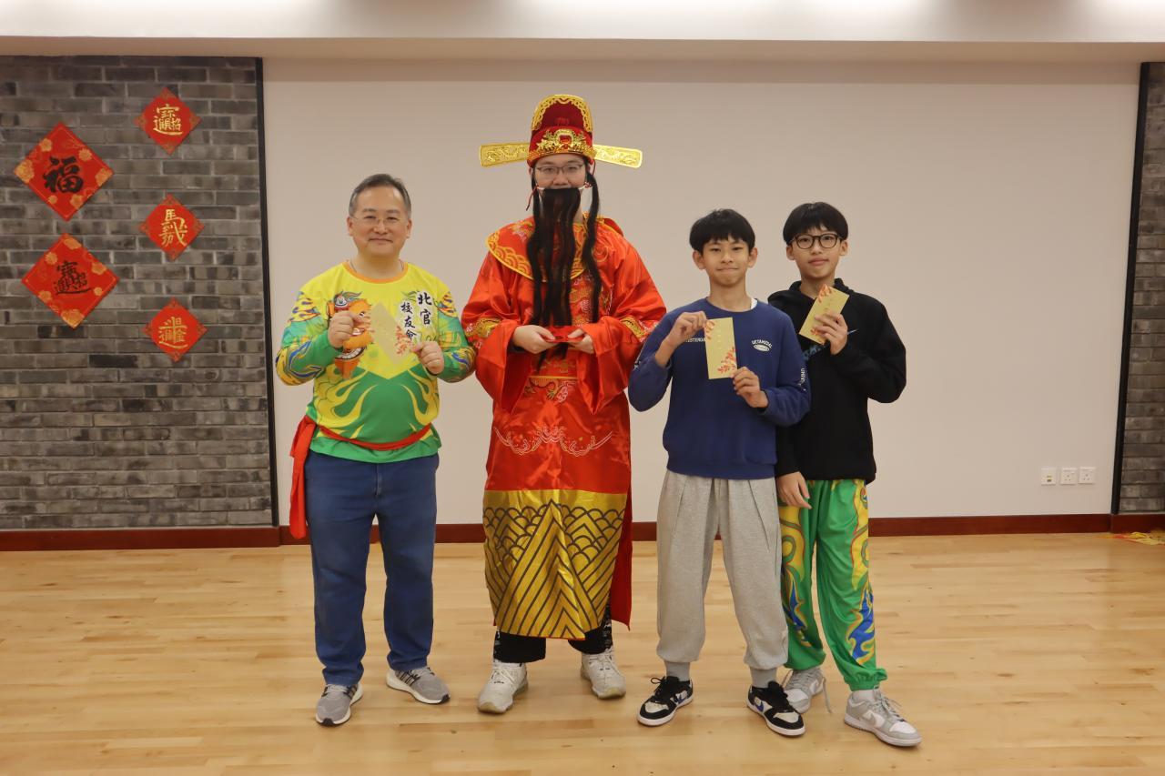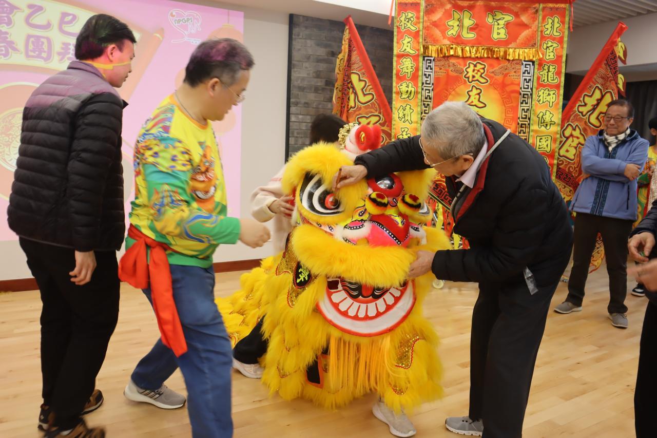 北官醒獅隊的成員均為學校的學生及校友,他們英姿颯爽,威風凜凜!校友胡承熙同學化身財神,為校友們進行現場大抽獎,並搭配新春祝賀遊戲,讓中華文化館洋溢著歡樂和喜慶的氣氛。