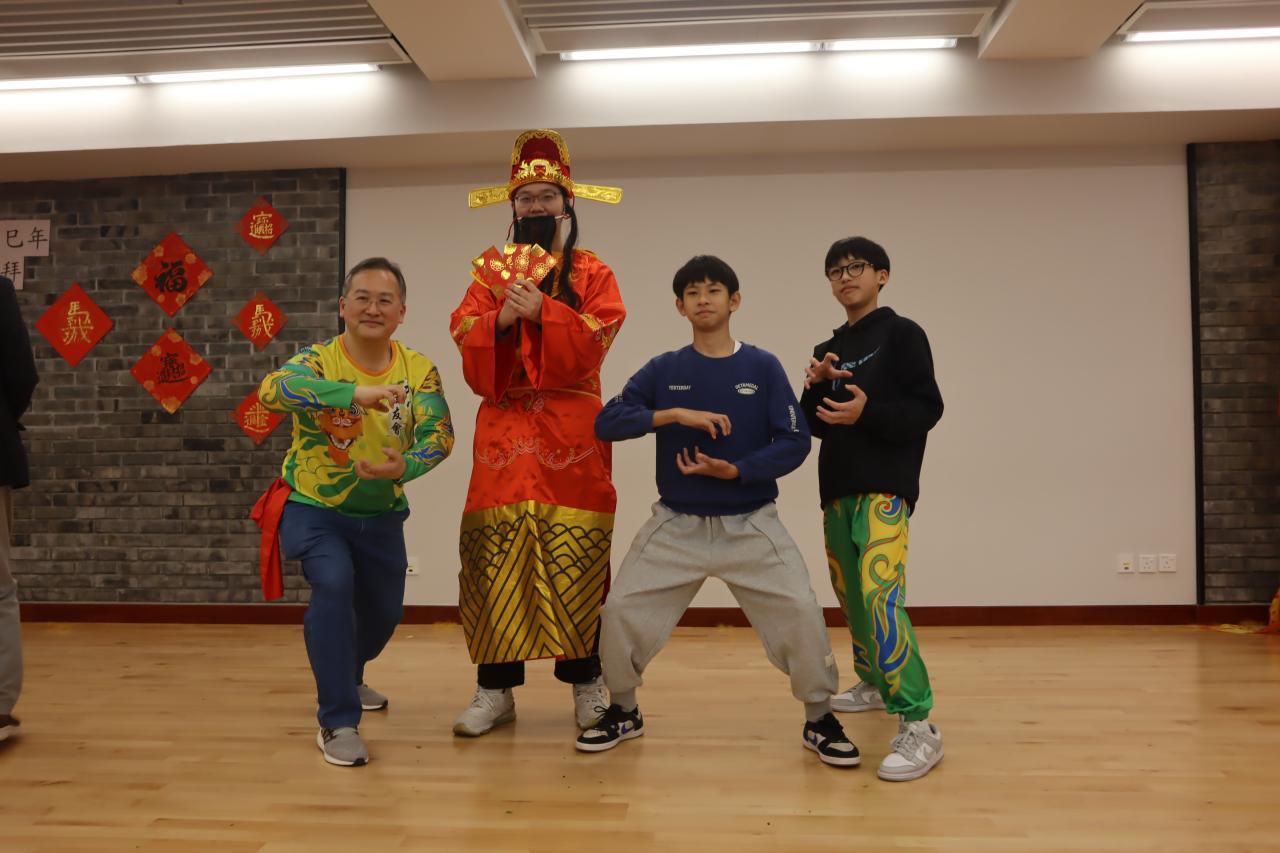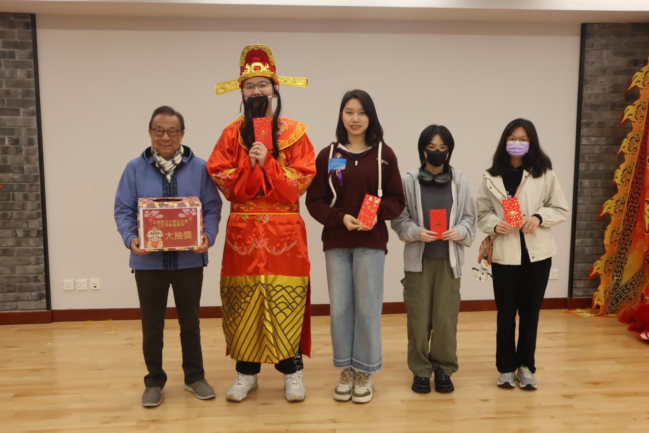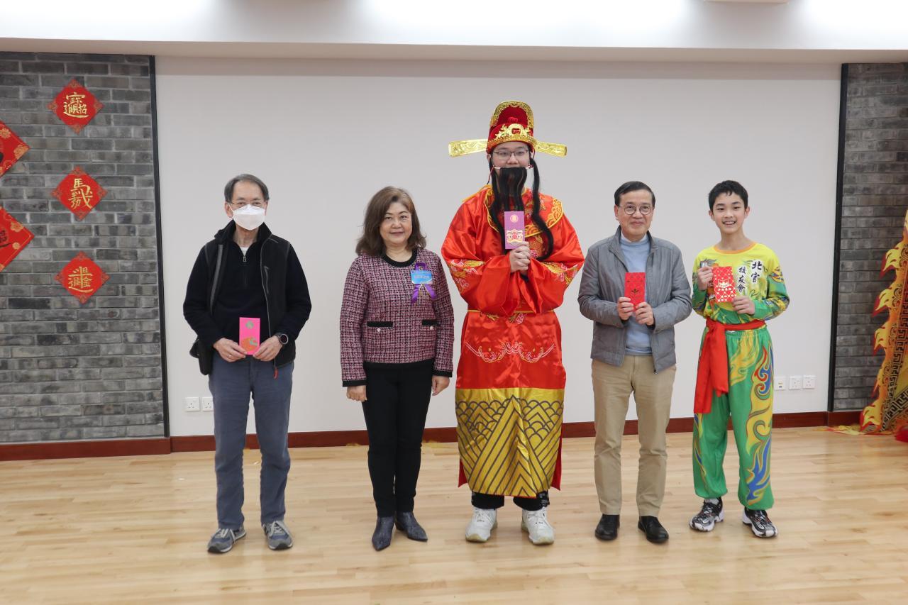 北官醒獅隊的成員均為學校的學生及校友,他們英姿颯爽,威風凜凜!校友胡承熙同學化身財神,為校友們進行現場大抽獎,並搭配新春祝賀遊戲,讓中華文化館洋溢著歡樂和喜慶的氣氛。
