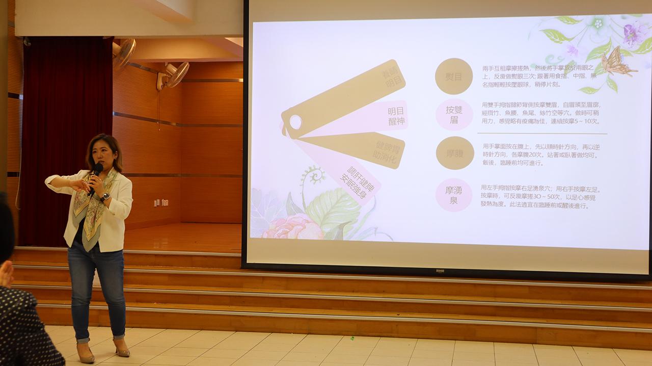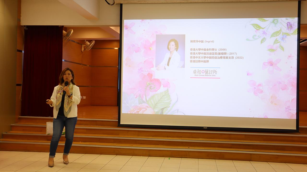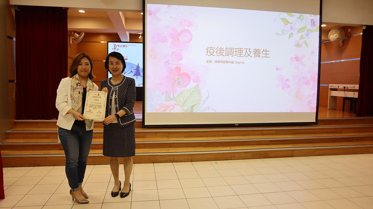 4月29日舉行了校友會第八屆(第二次)會員大會暨中醫講座「疫後調理及養生」。校友及家長渡過了一個輕鬆的下午,中醫講座由校友陳翠萍中醫師主講。陳醫師雖工作繁忙,但仍無忘回饋母校,撥冗回校主持健康講座,實在難得。陳醫師十分關心老師、家長及校友健康,她大談中醫養生的理論,更示範穴位按摩及分享疫後調理湯水,大家都獲益良多。