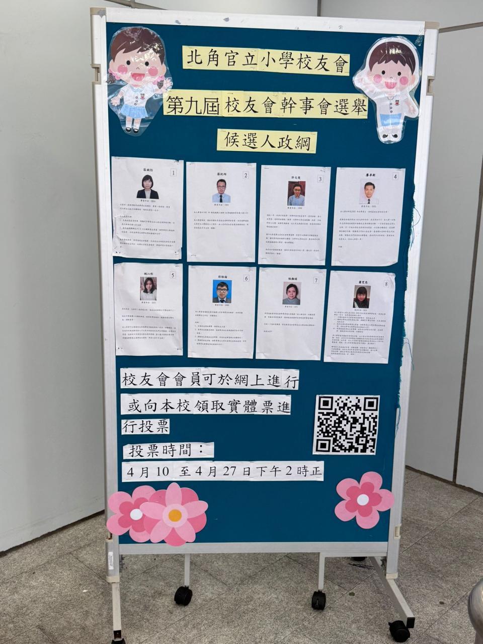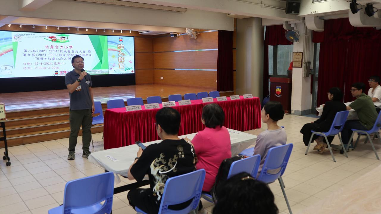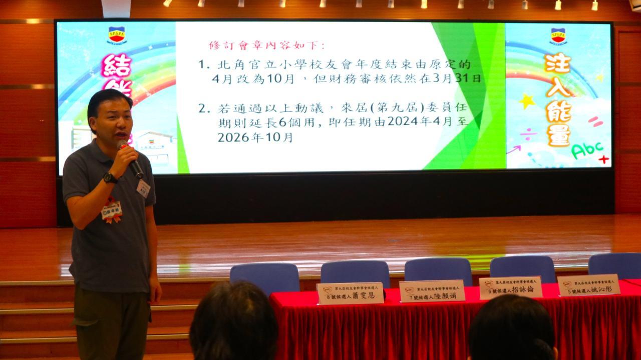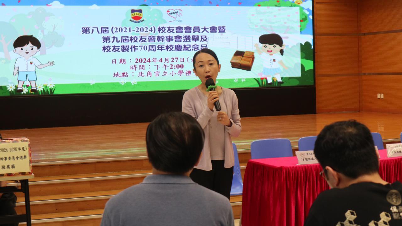 2024年4月27日,在學校舉行了第八屆校友會會員大會暨第九屆校友會幹事會選舉。首先由葉韻婷校長致歡迎詞,接著由第八屆校友會副主席廖卓新先生及司庫郭錦邦先生作會務及財政報告。第九屆校友會幹事會選舉以投信任票形式進行,幹事會獲得接近九成半信任票,陸顏娟主席將帶領第九屆(2024-2026年度)校友會幹事,與母校緊密合作,繼續舉辦校友活動,凝聚各屆校友,承傳北官情。最後,校長、校友會幹事、校友及教師聚首一堂,一同製作70周年校慶紀念品,樂也融融。