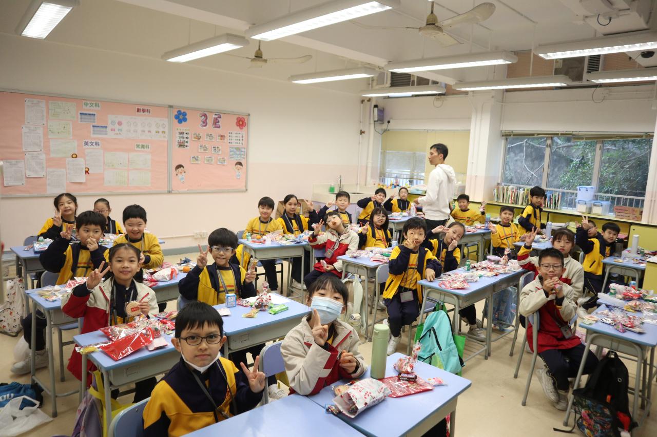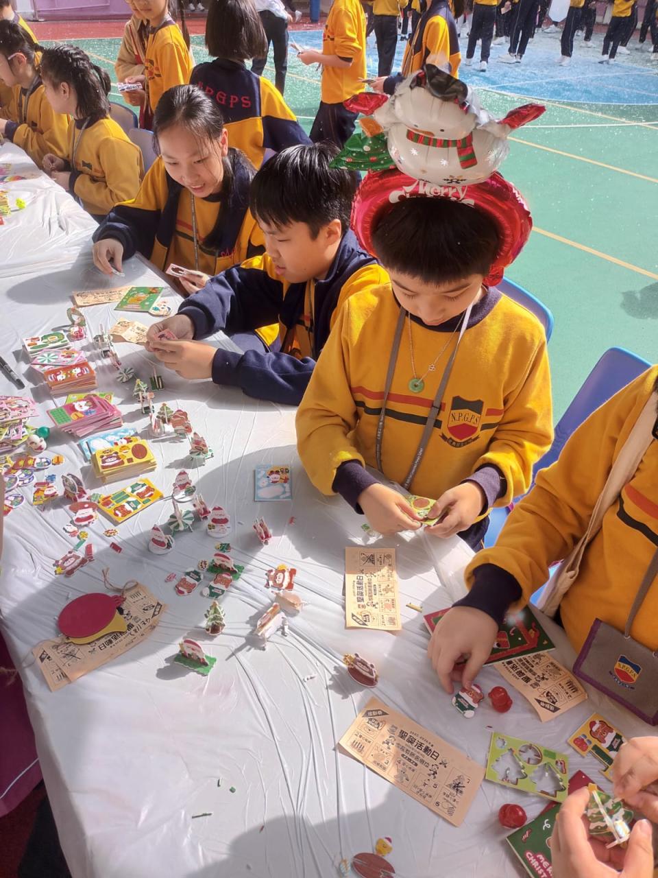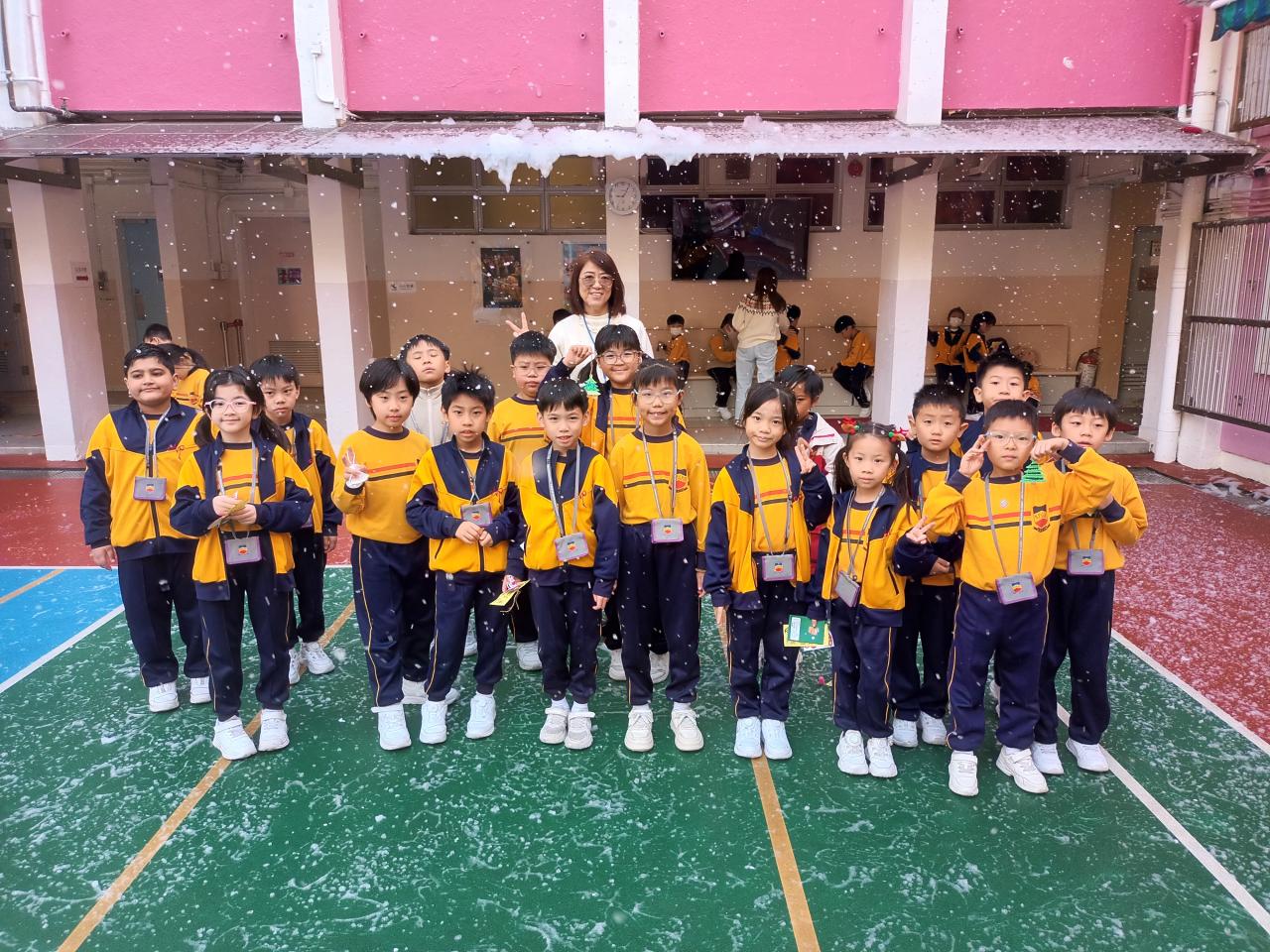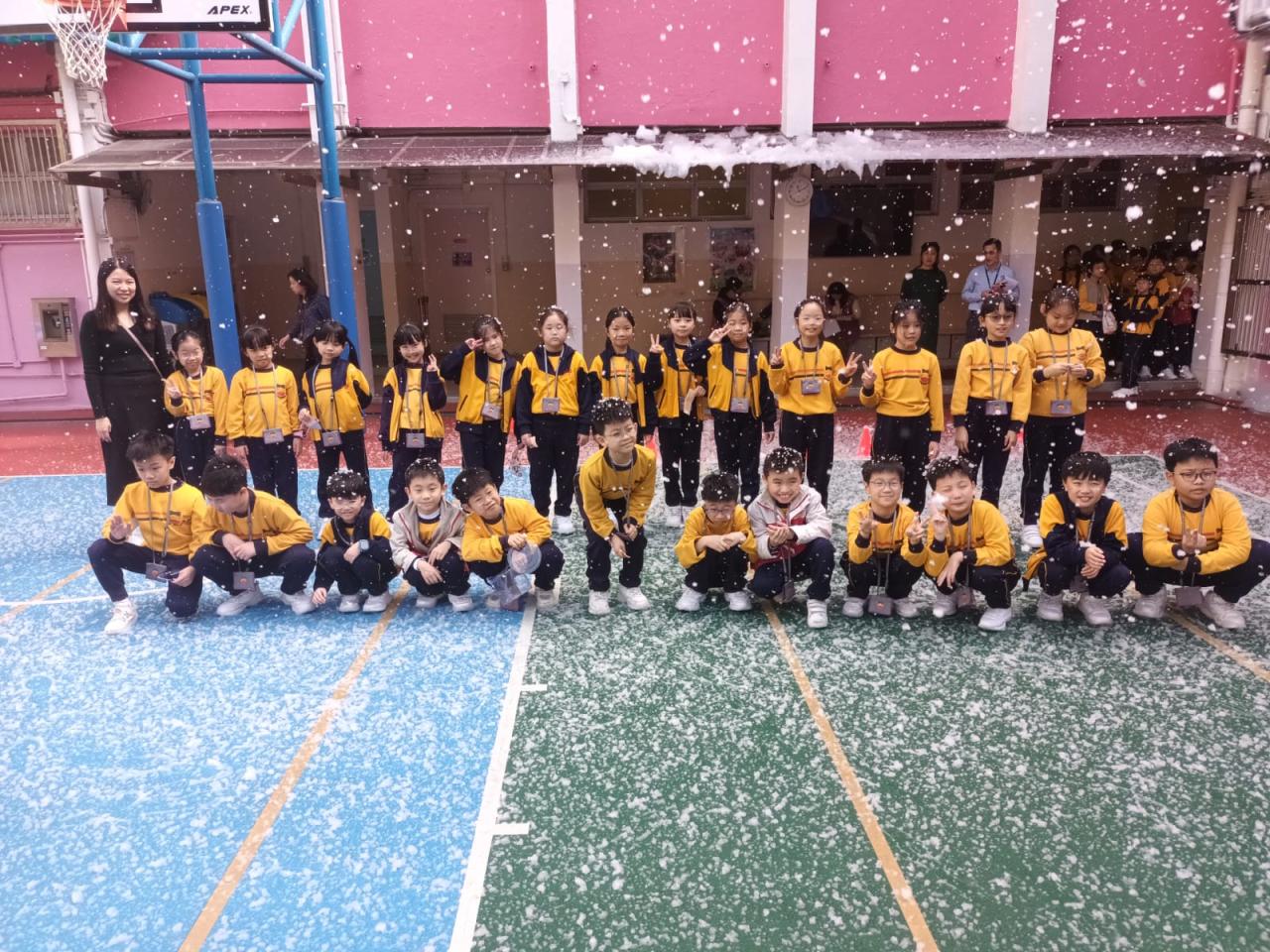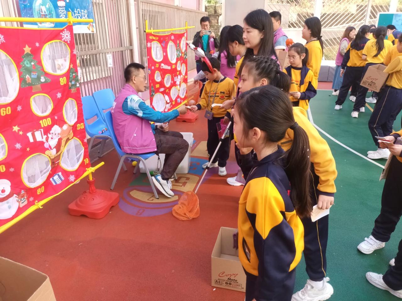 當天在禮堂舉行了學生表演,包括手鐘隊、夏威夷小結他校隊、花式跳繩校隊、魔術校隊的表演,以及小藝墟才藝表演,讓學生能在台上展示體藝學習的成果,增強信心及團結精神,並培養學生欣賞他人的能力。此外,在聖誕吊飾設計比賽中獲得優異獎的學生展示了他們的作品,並分享設計理念,讓同學們互相學習和珍惜與家人一同製作比賽作品的機會。在操場上,家長教師會舉辦了攤位活動及飄雪活動,讓同學感受聖誕的氛圍,並透過DIY吊飾寫下祝福。在課室內,班主任帶領同學進行健康小食分享,透過簡報引導學生珍惜與人相處的機會,關愛身邊的人,並分享感謝和祝福。