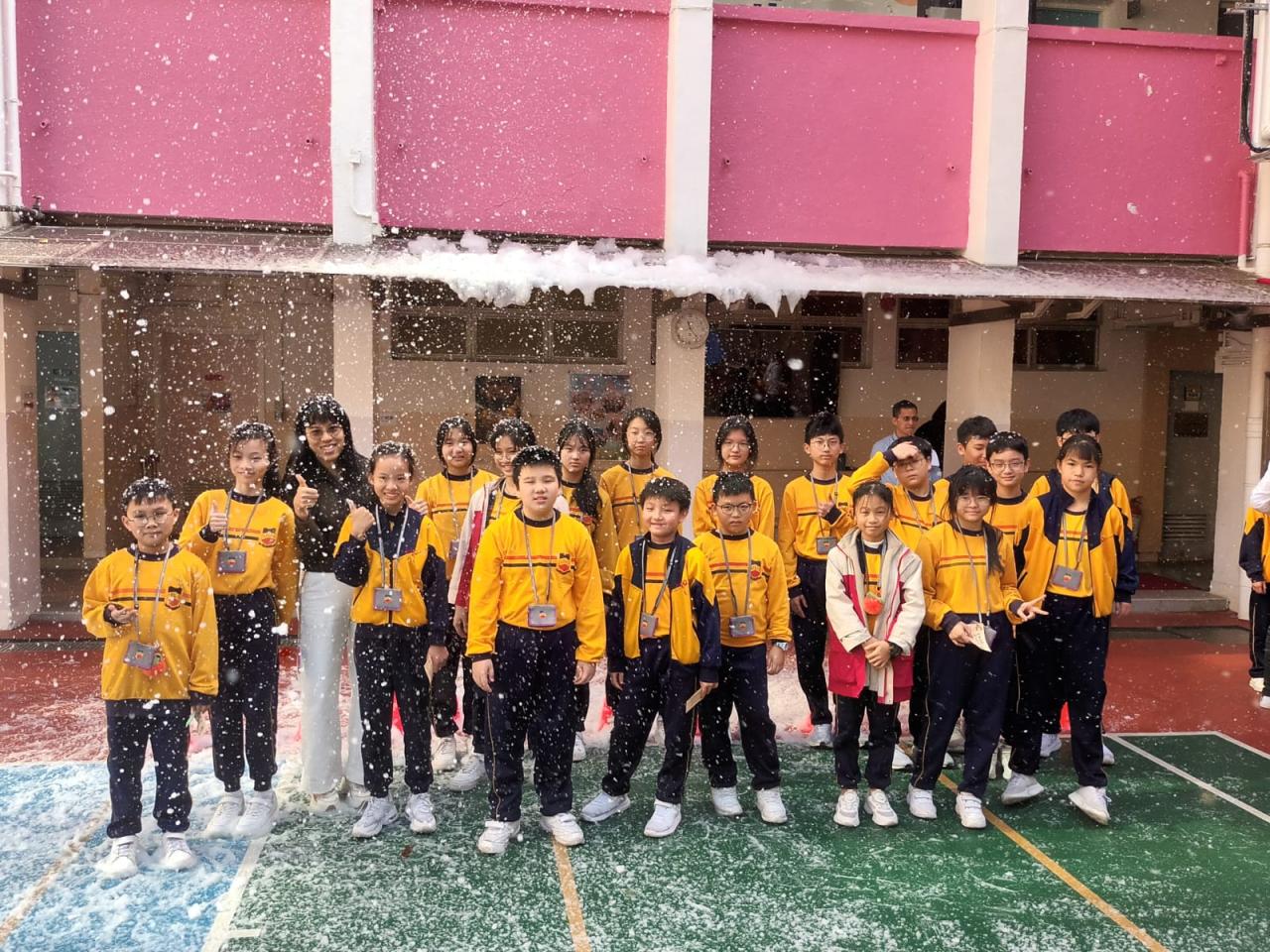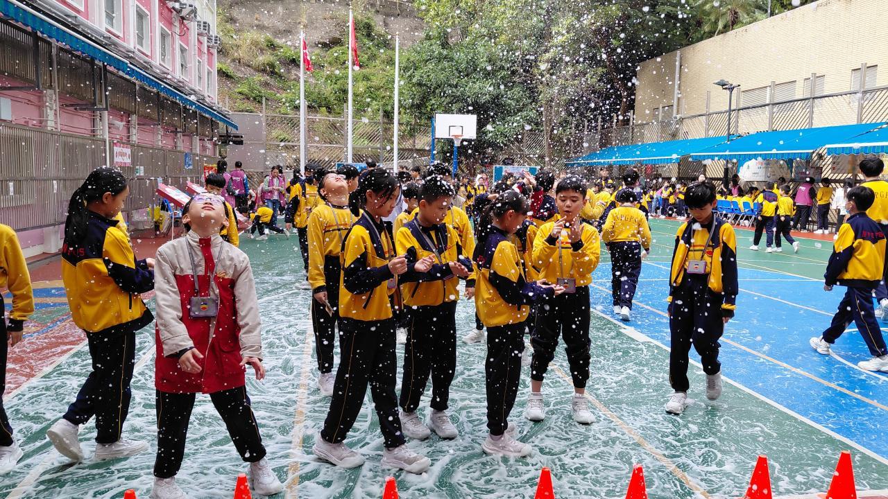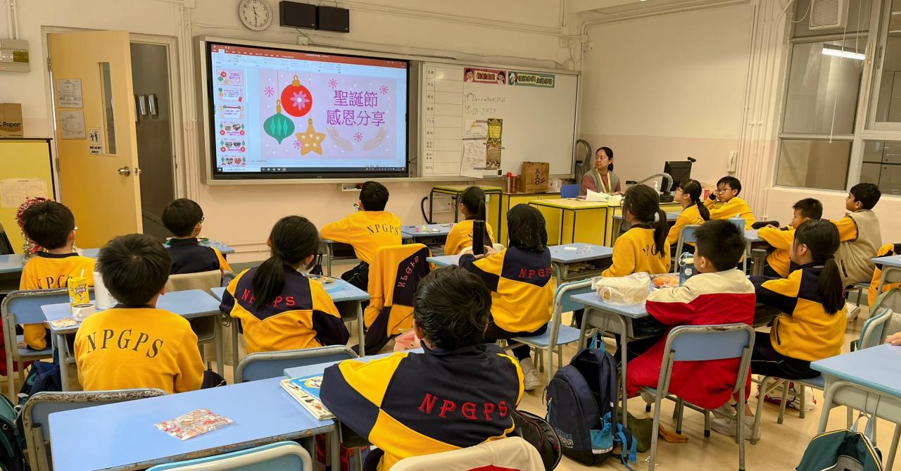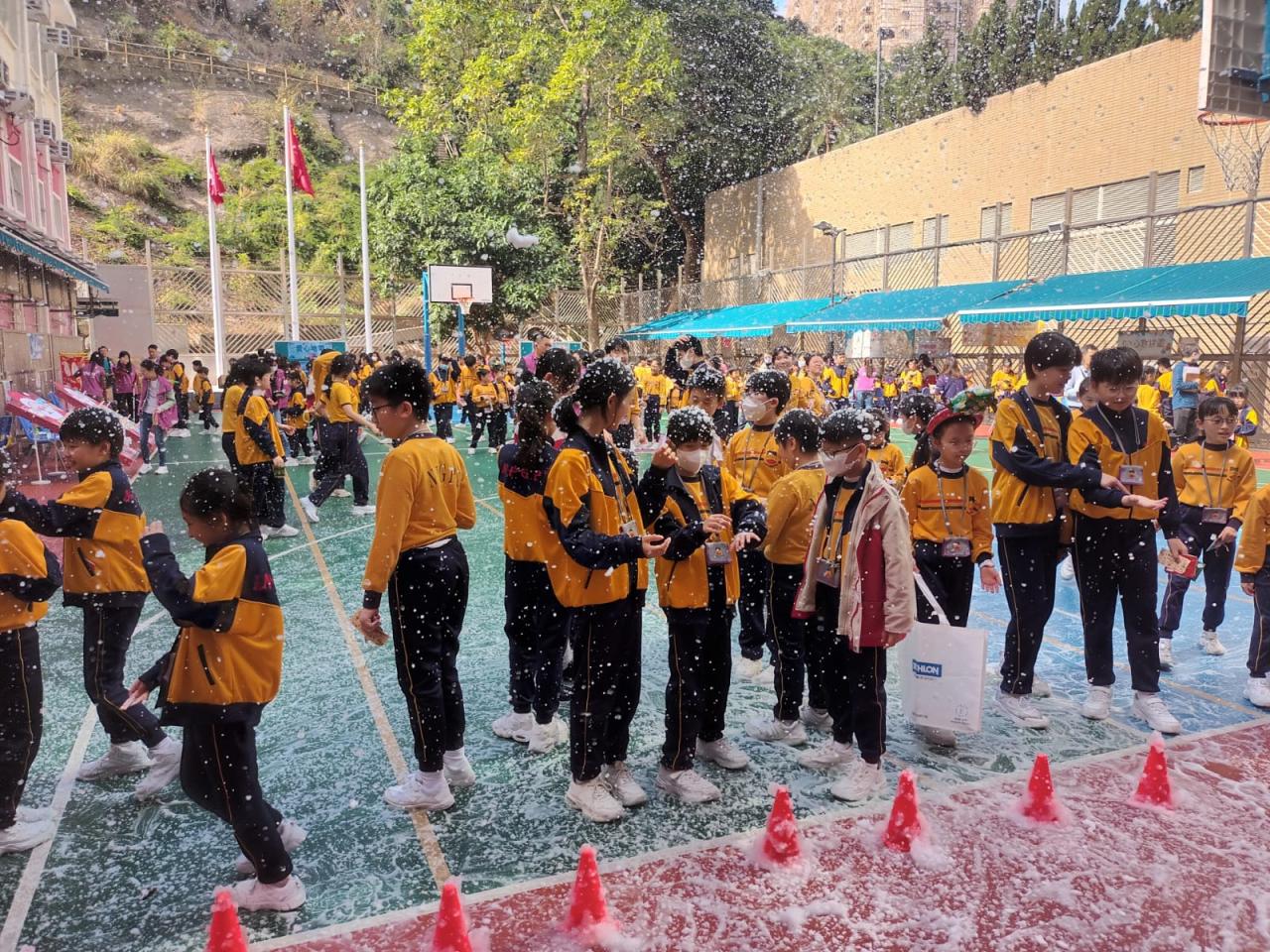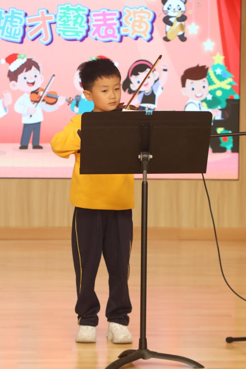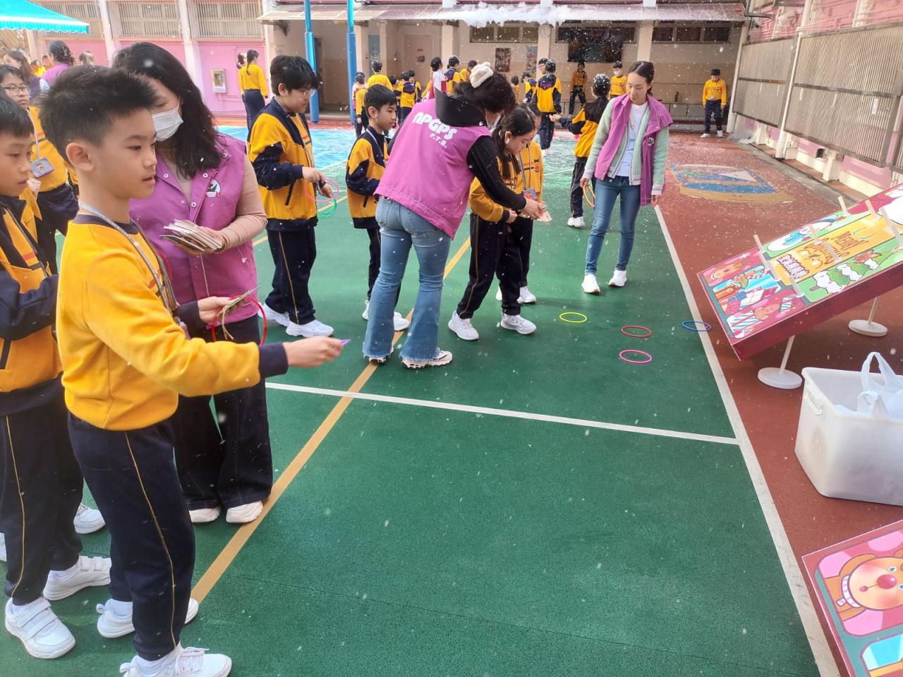 當天在禮堂舉行了學生表演,包括手鐘隊、夏威夷小結他校隊、花式跳繩校隊、魔術校隊的表演,以及小藝墟才藝表演,讓學生能在台上展示體藝學習的成果,增強信心及團結精神,並培養學生欣賞他人的能力。此外,在聖誕吊飾設計比賽中獲得優異獎的學生展示了他們的作品,並分享設計理念,讓同學們互相學習和珍惜與家人一同製作比賽作品的機會。在操場上,家長教師會舉辦了攤位活動及飄雪活動,讓同學感受聖誕的氛圍,並透過DIY吊飾寫下祝福。在課室內,班主任帶領同學進行健康小食分享,透過簡報引導學生珍惜與人相處的機會,關愛身邊的人,並分享感謝和祝福。