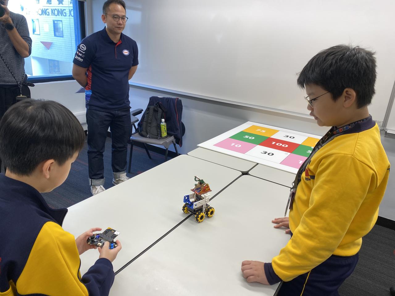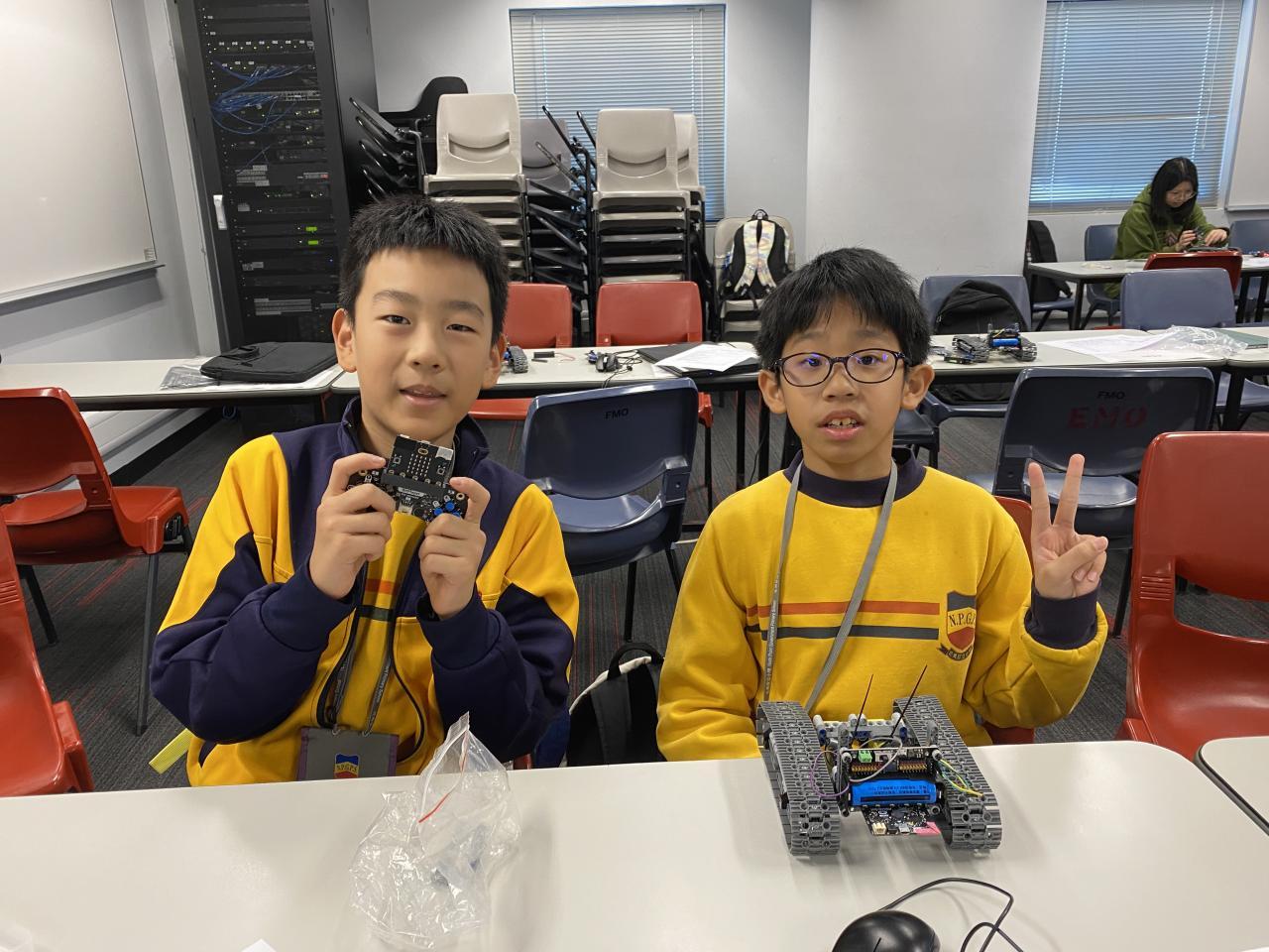 我校6位同學參加了由香港科技大學舉辦的iSTEAM活動,以micro:bit編程,讓機械人進行磁力探測和投石比賽,過程既緊張又刺激,同學們都樂在其中。最終,同學在比賽中勇奪佳績,分別在磁力探測比賽榮獲冠軍以及在投石比賽榮獲銅章級。
