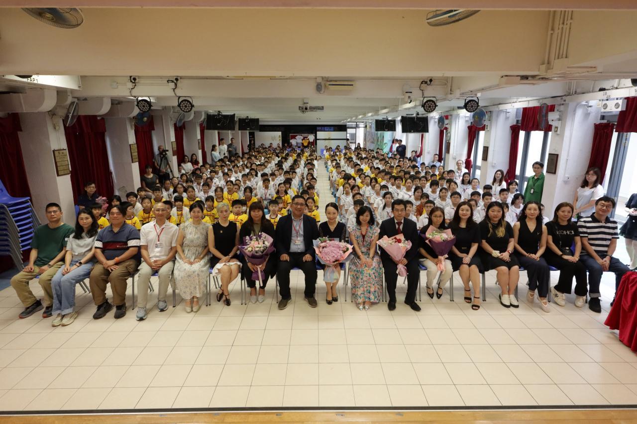 本年度的開學禮暨敬師日於9月9日順利舉行。升旗儀式後,由葉韻婷校長致訓勉辭,並以「勝不驕,敗不餒」來鼓勵同學們不論在比賽還是生活中,勇於承擔責任是成功的關鍵。輸贏並不是最重要,重點在於從中學習與成長,讓每一次經歷都成為進步的機會。