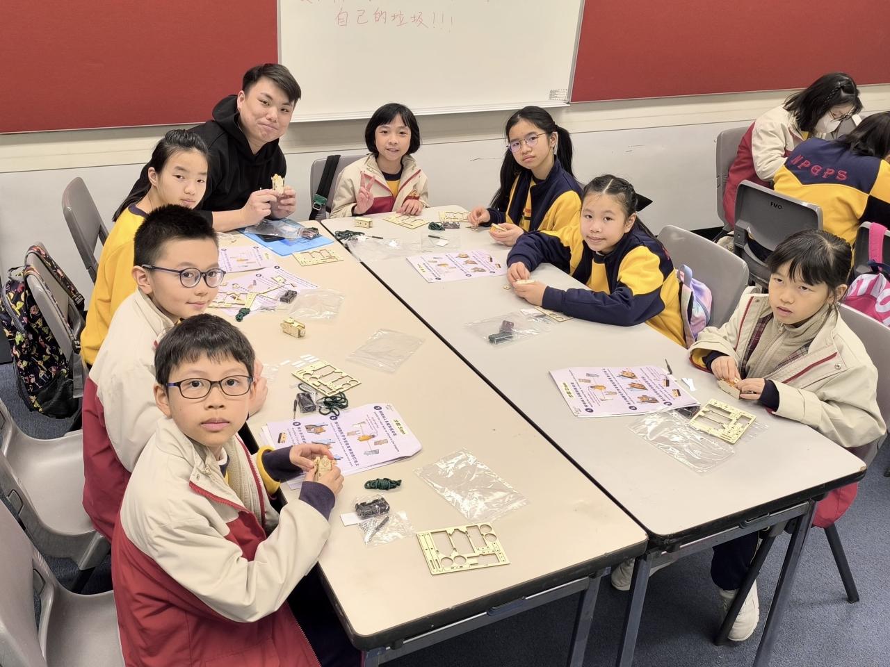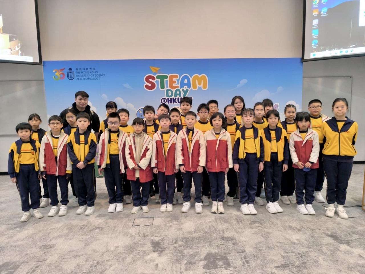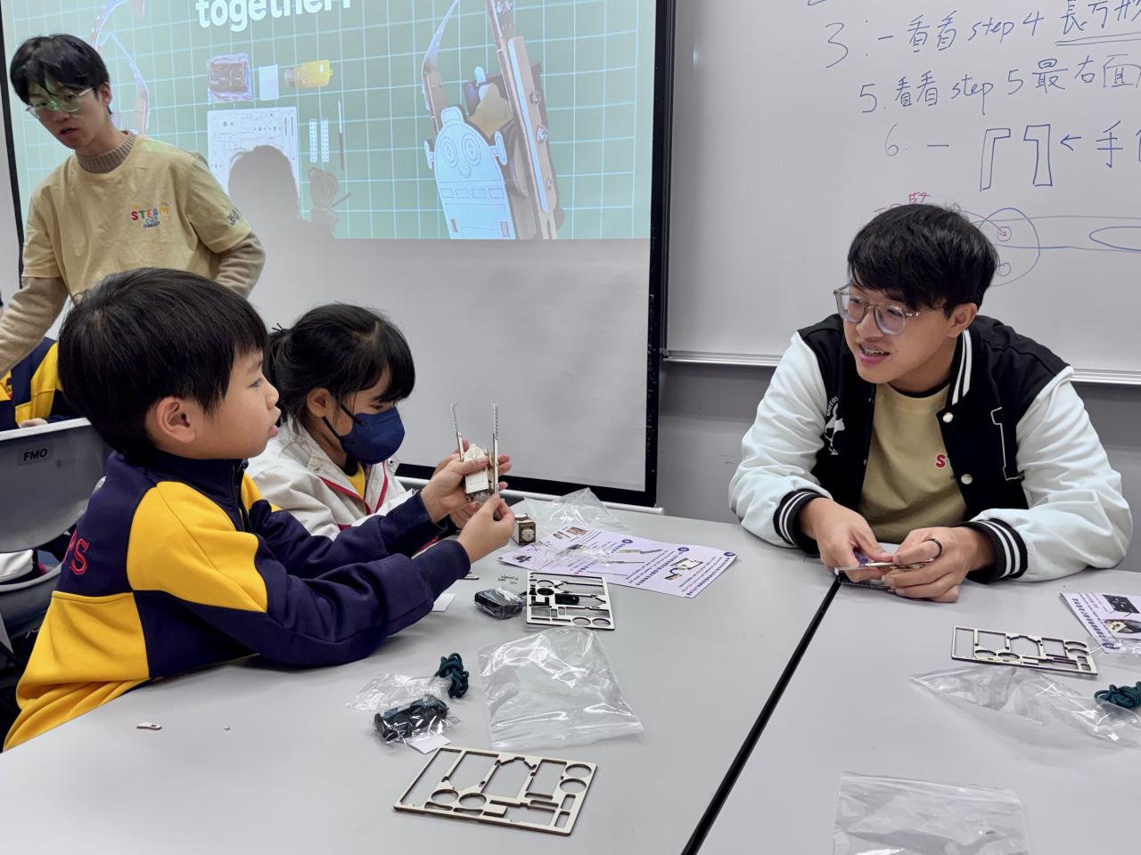 28位四至六年級同學參與由香港科技大學舉辦的STEAM DAY@HKUST活動,透過大學生的介紹及指導,認識科學及工程學系的學習內容。同學更有機會在工程系大學生的指導下製作攀繩機械人,在進行測試和改良的過程中,體驗工程設計及創作的樂趣。