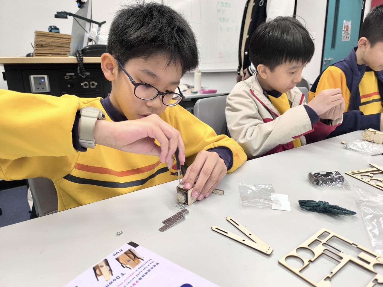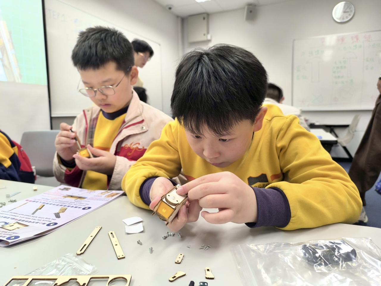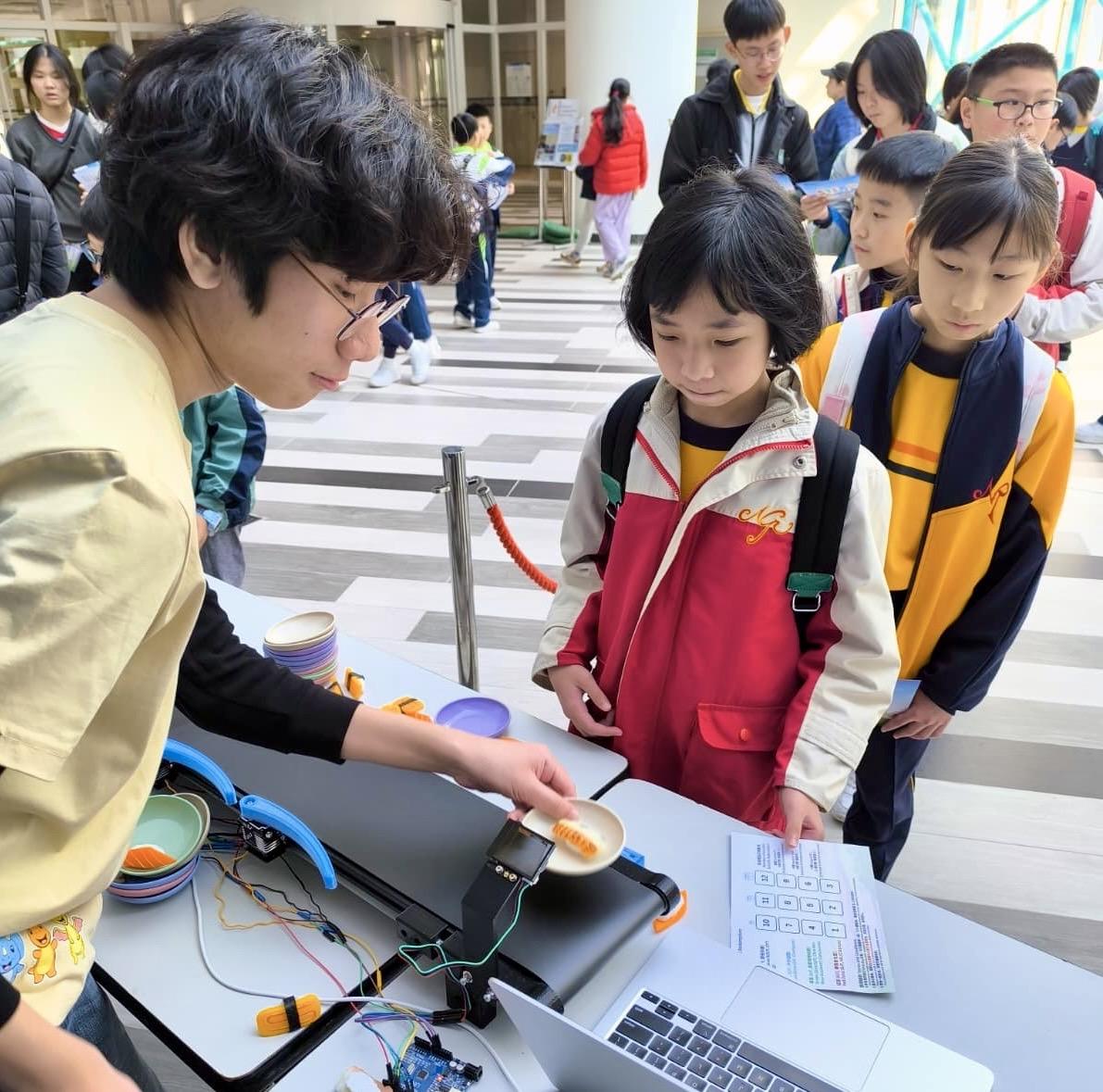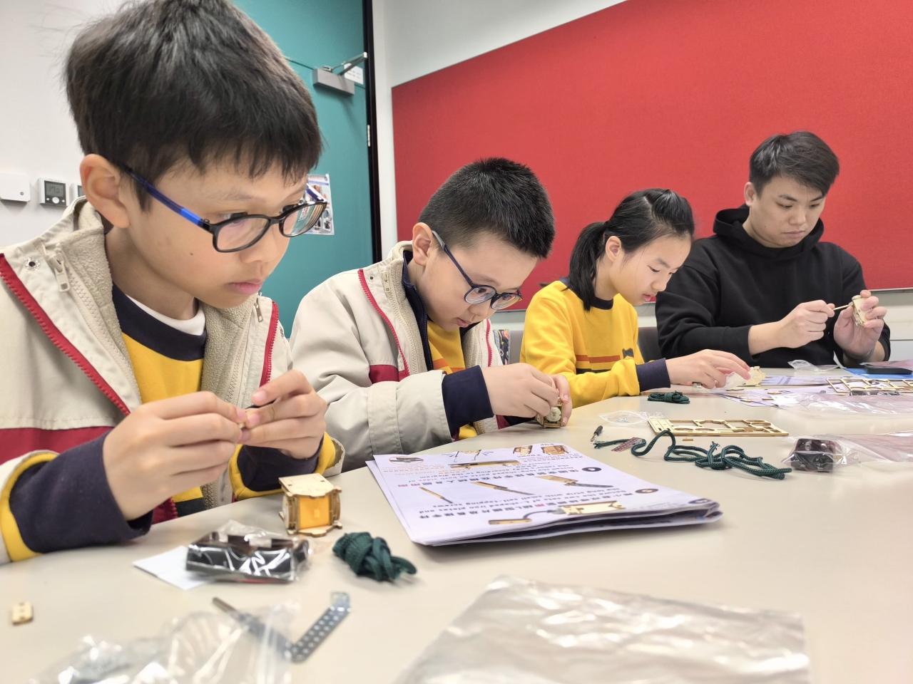 28位四至六年級同學參與由香港科技大學舉辦的STEAM DAY@HKUST活動,透過大學生的介紹及指導,認識科學及工程學系的學習內容。同學更有機會在工程系大學生的指導下製作攀繩機械人,在進行測試和改良的過程中,體驗工程設計及創作的樂趣。